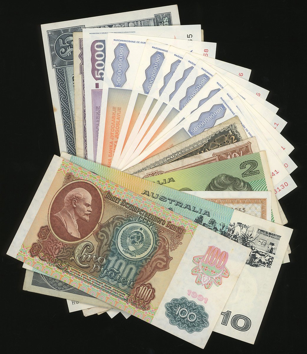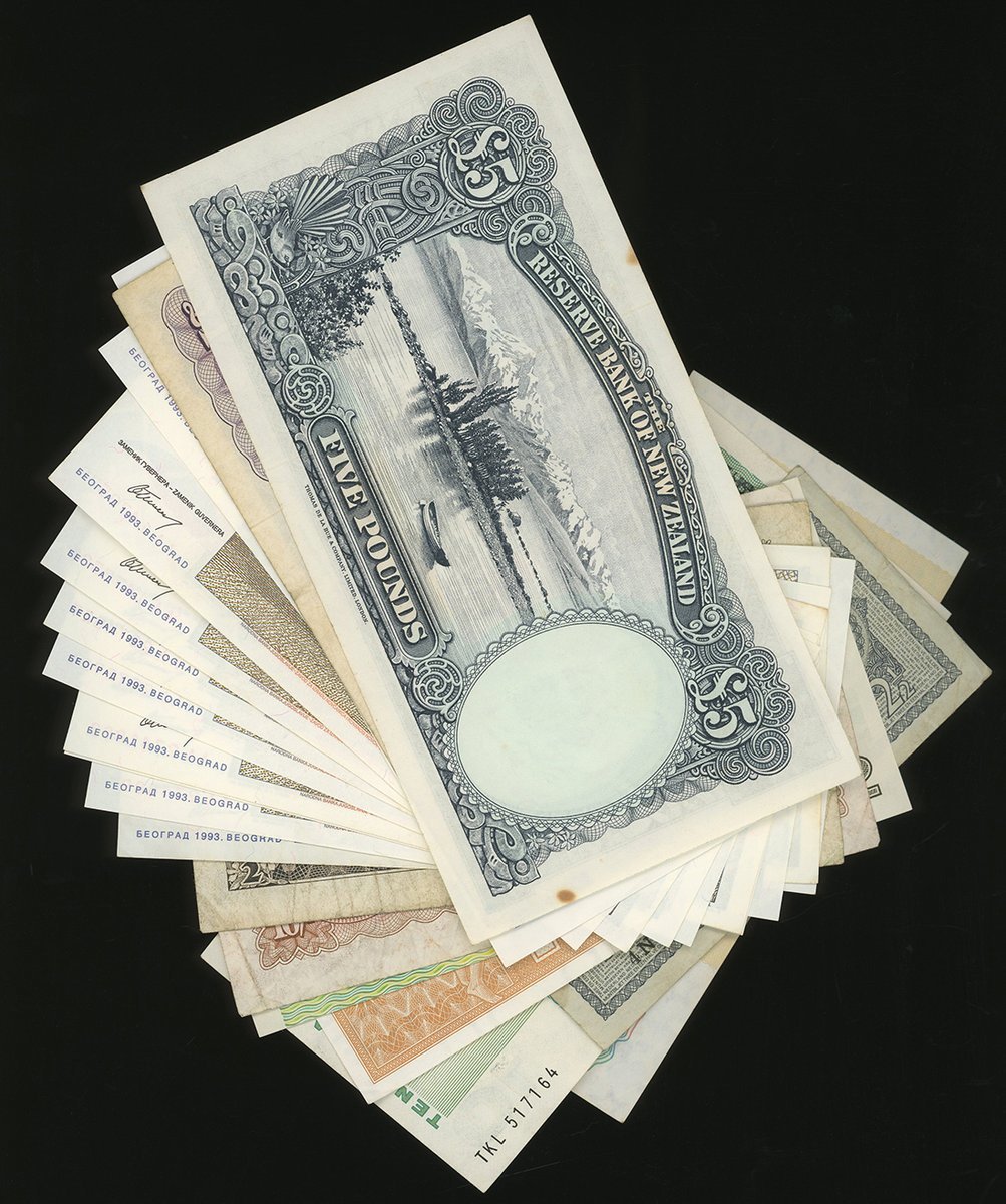 世界紙鈔一組30枚,包括俄羅斯、西班牙,新西蘭及南斯拉夫等地區,混合品相