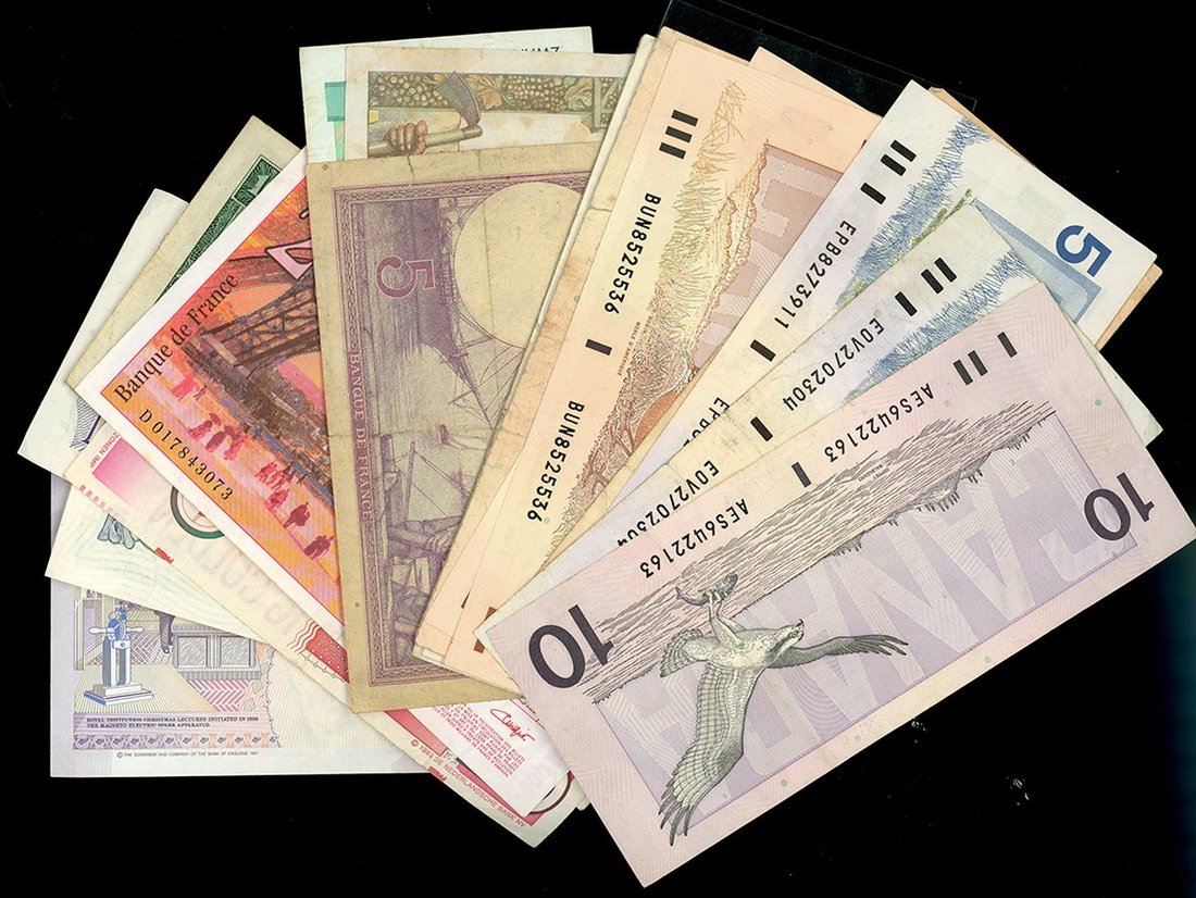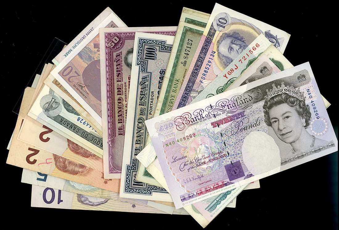 World Banknotes, group of 33 notes, including South Africa, Canada, Spain, Great Britain, Germany, France, etc,