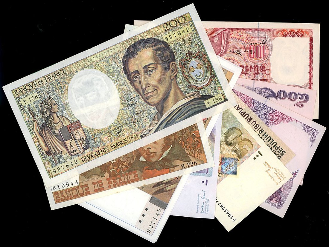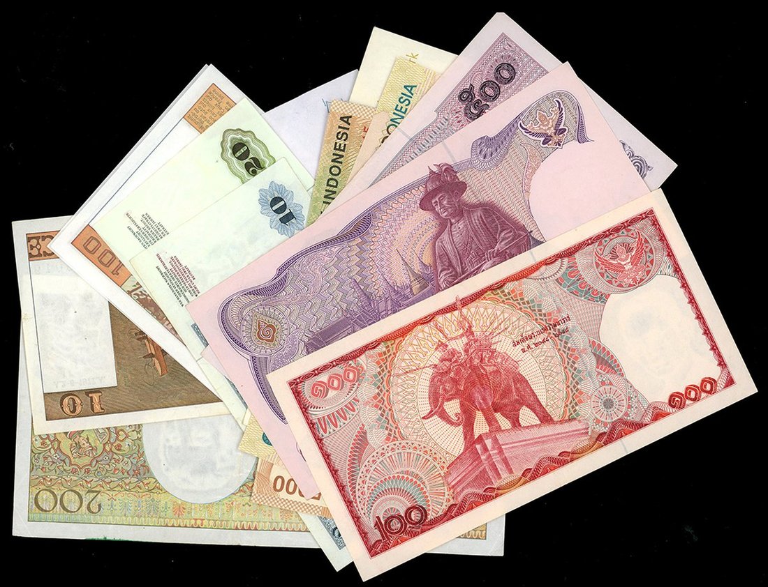 1970-2000年世界紙鈔一組14枚,來自法國、德國、印尼及泰國,高分的一組