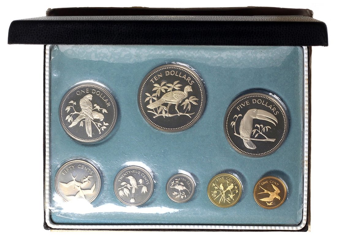 Government of Belize, silver proof set of 1974, 'Avifauna of Belize', minted at the Franklin Mint, containing silver coins with an aggregate of 2.8277oz silver,