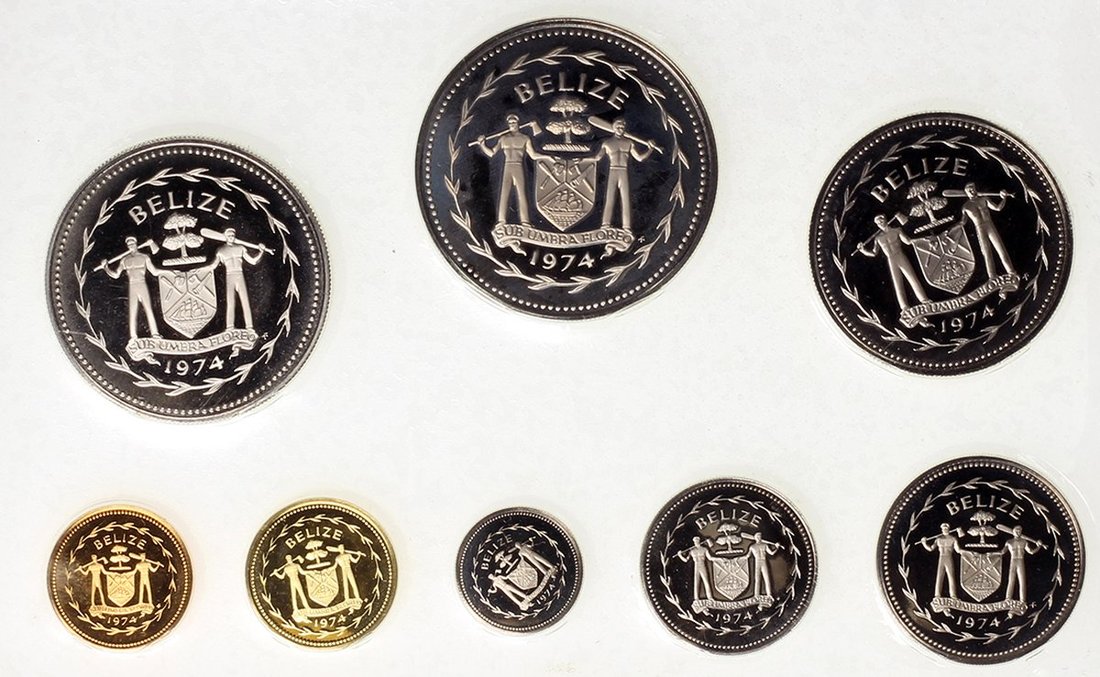1974年伯利茲政府"伯利茲鳥"系列精鑄銀幣一組8枚,附原盒及證書