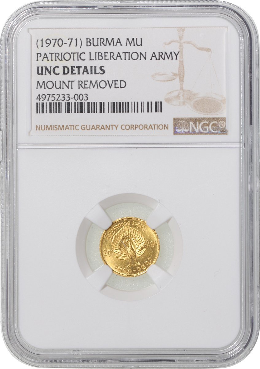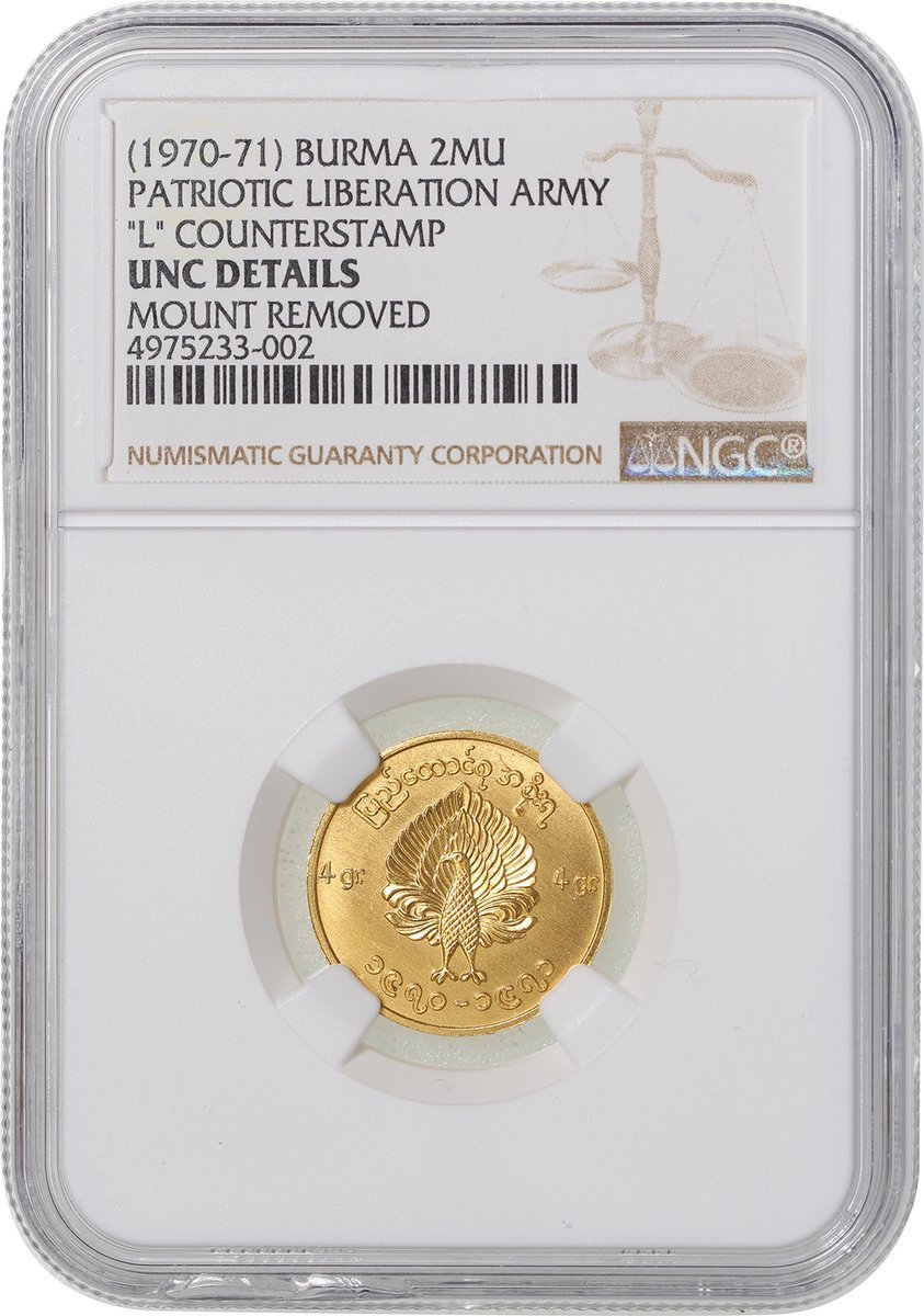 Burma, lot of 1, 2 and 4 Mu gold coins, 1970-71, issued by Patriotic Liberation Army, the latter two with "L" counterstamp,