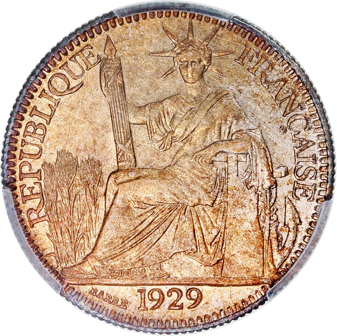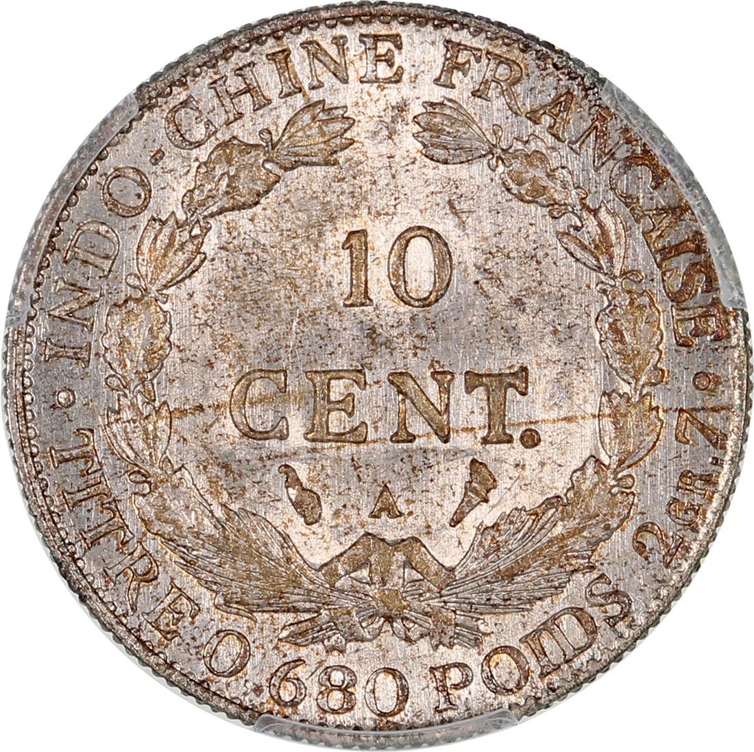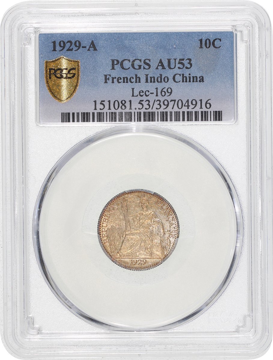 French Indo China, silver 10 cents, 1929-A, (Lec 169), PCGS AU53