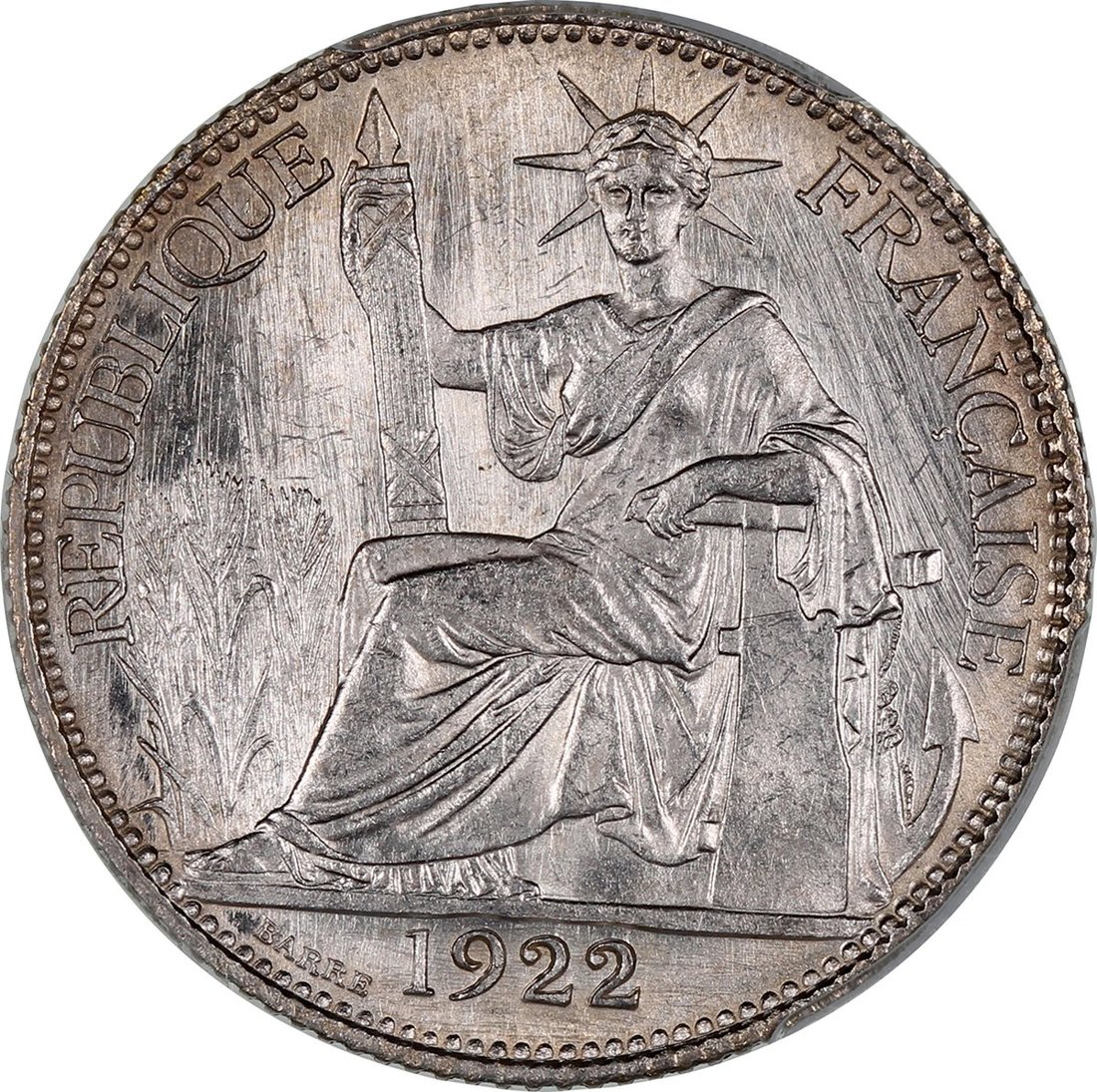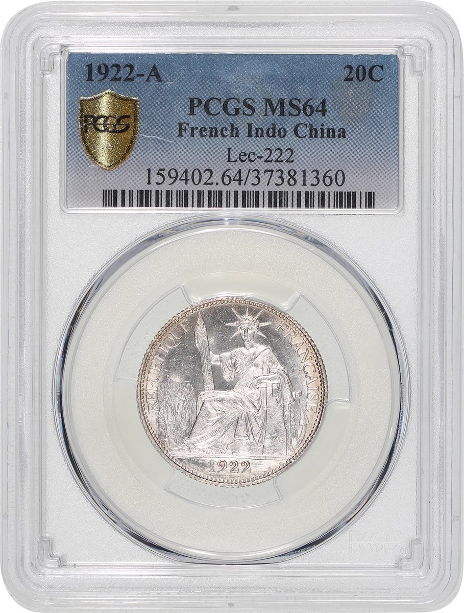 1922-A法屬安南20分銀幣,PCGS MS64