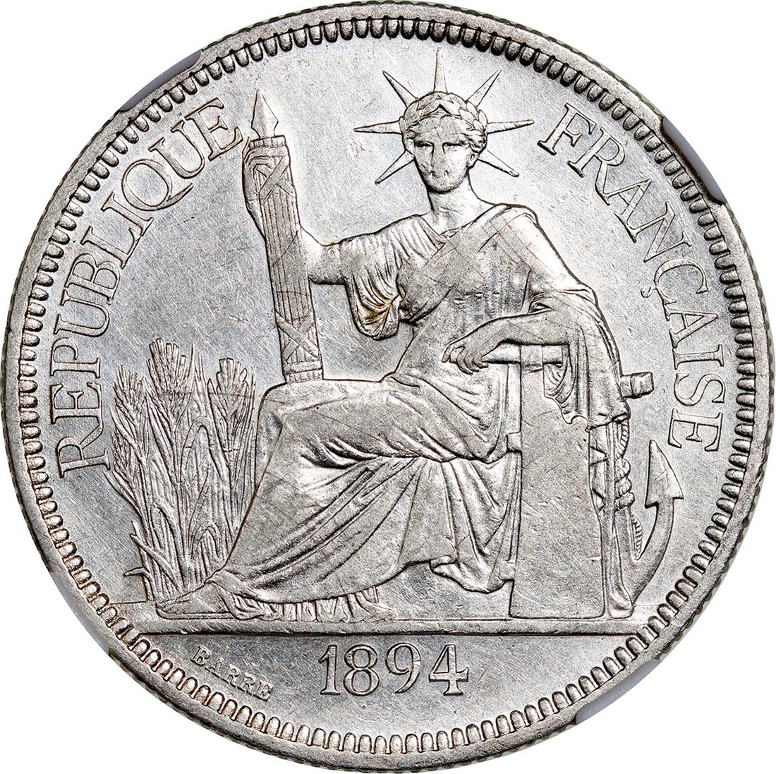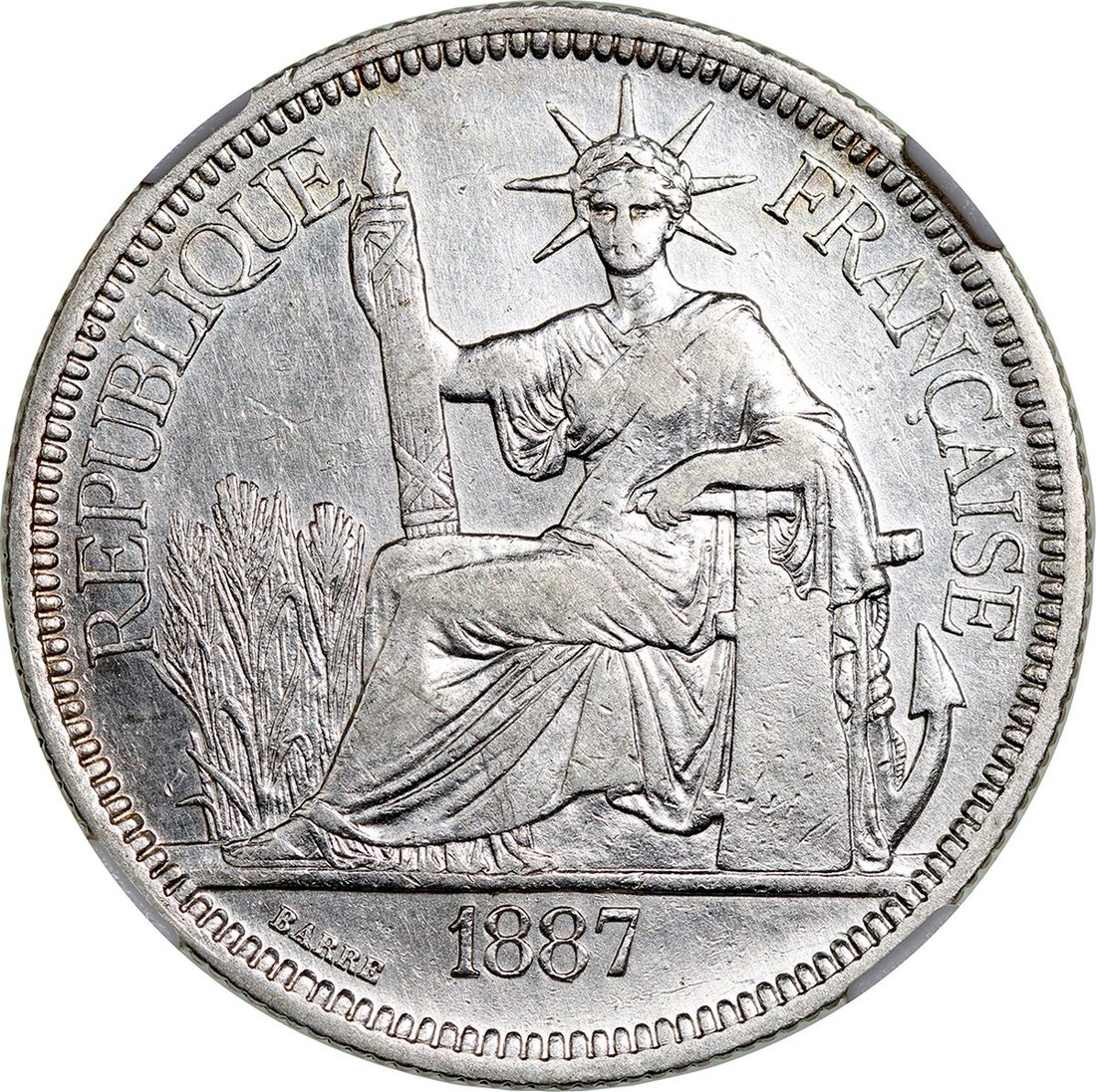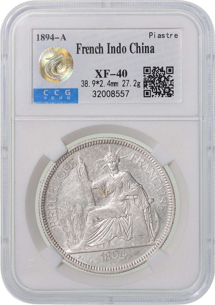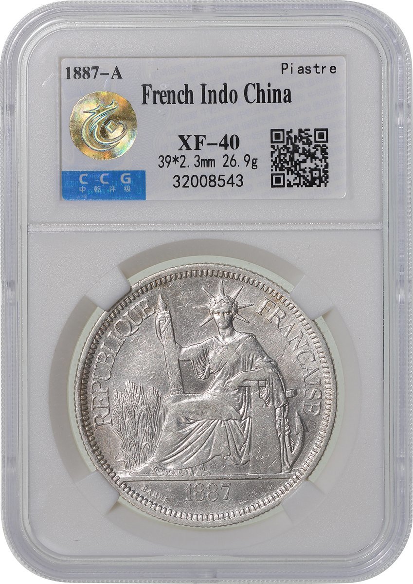 1887-A、1889-A及1894-A法屬安南1元一組3枚,均評中乾XF40