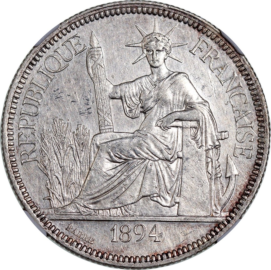 French Indochina, group of 3x 1 Piastre, consisting of: 1x (1894-A),  1x (1895-A) and 1x (1898-A),