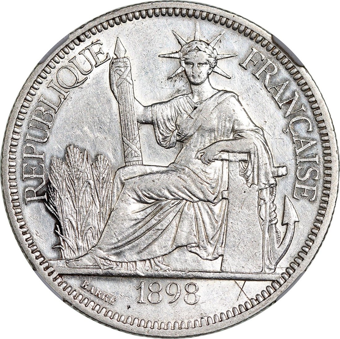 French Indochina, group of 3x 1 Piastre, consisting of: 1x (1885-A),  1x (1898-A) and 1x (1900-A),
