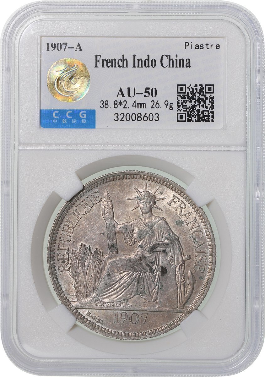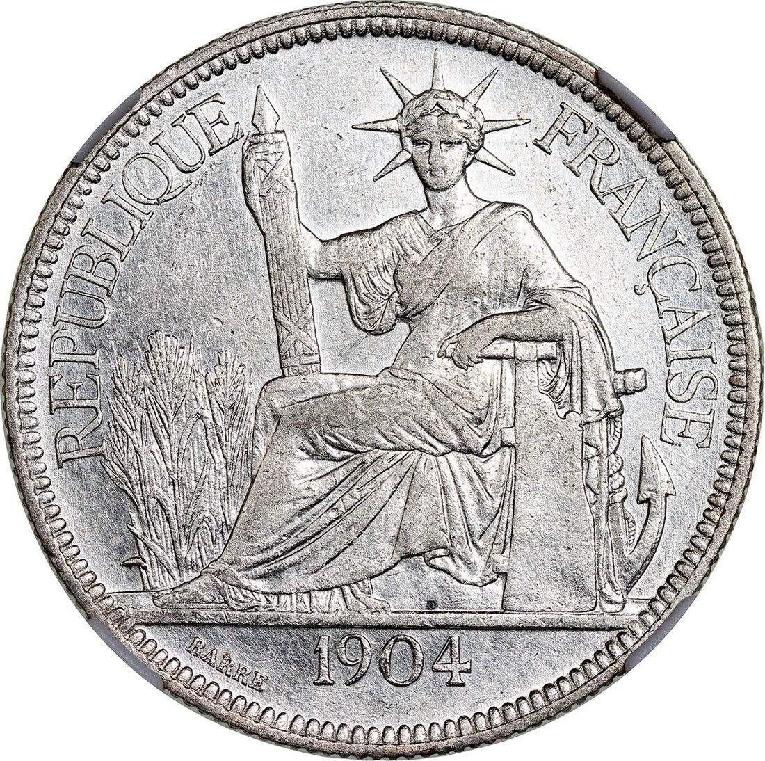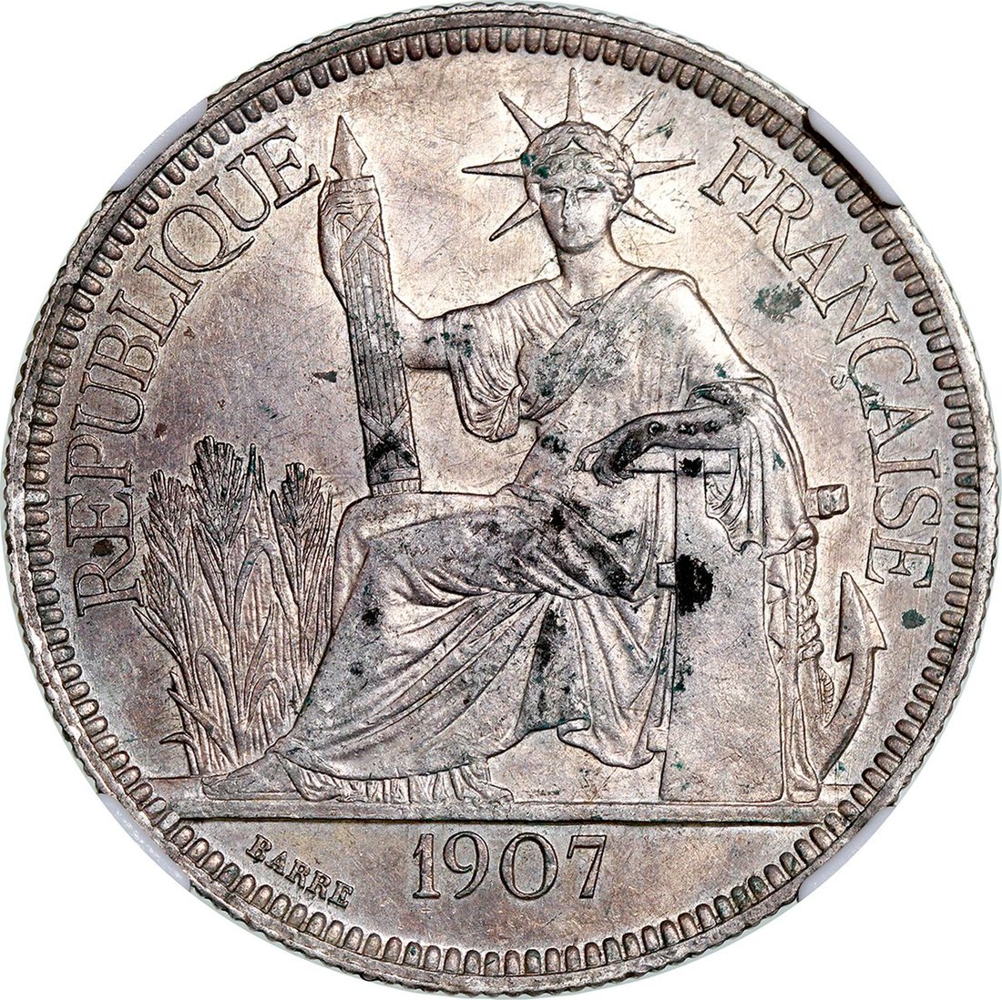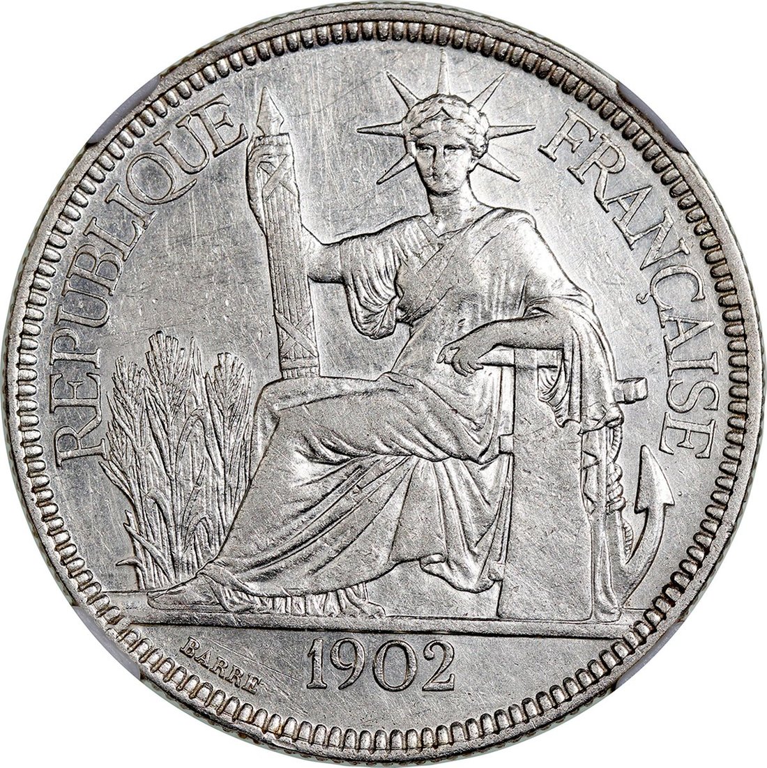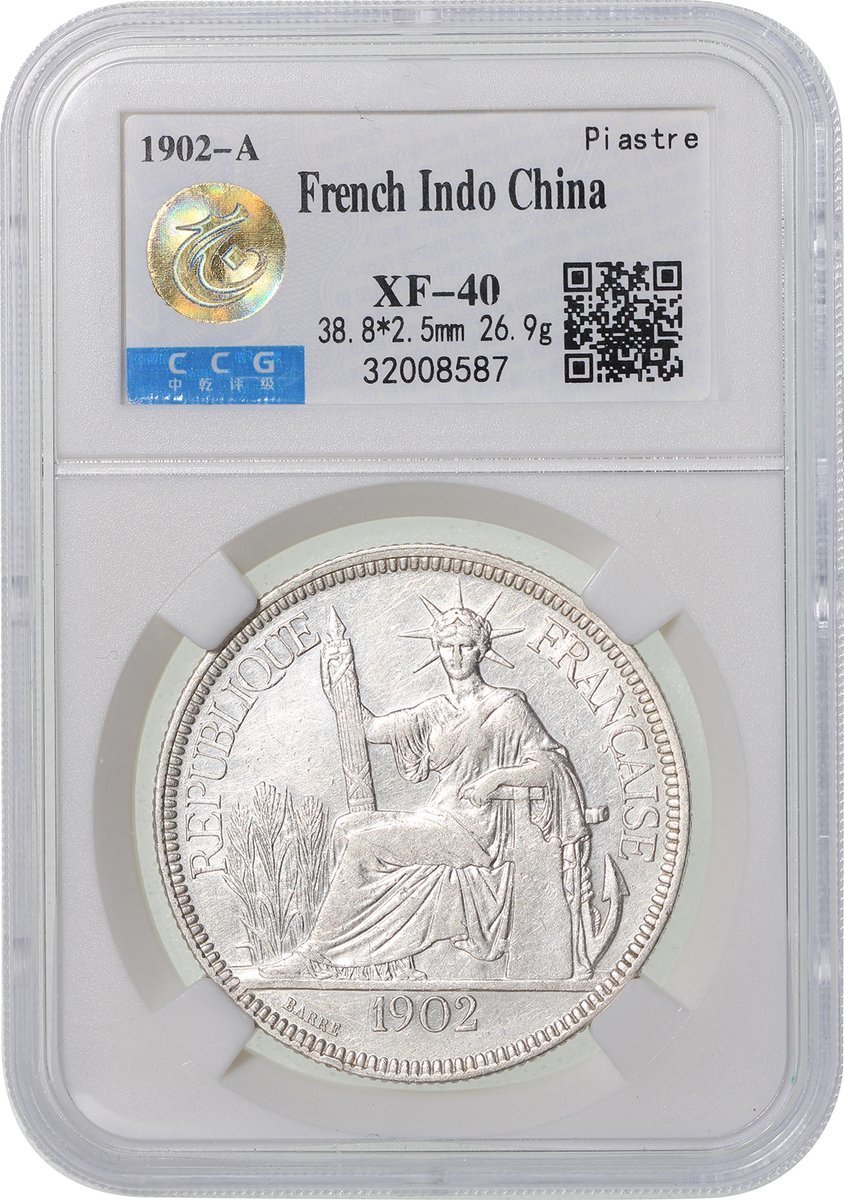 1902-A、1904-A及1907-A法屬安南1元一組3枚,中乾分別評XF40、XF45及AU50