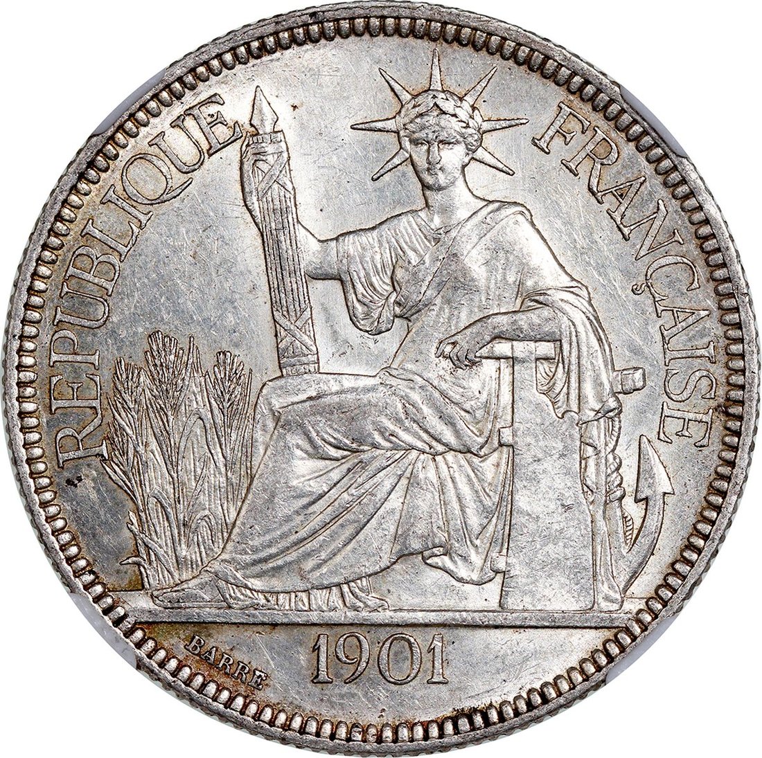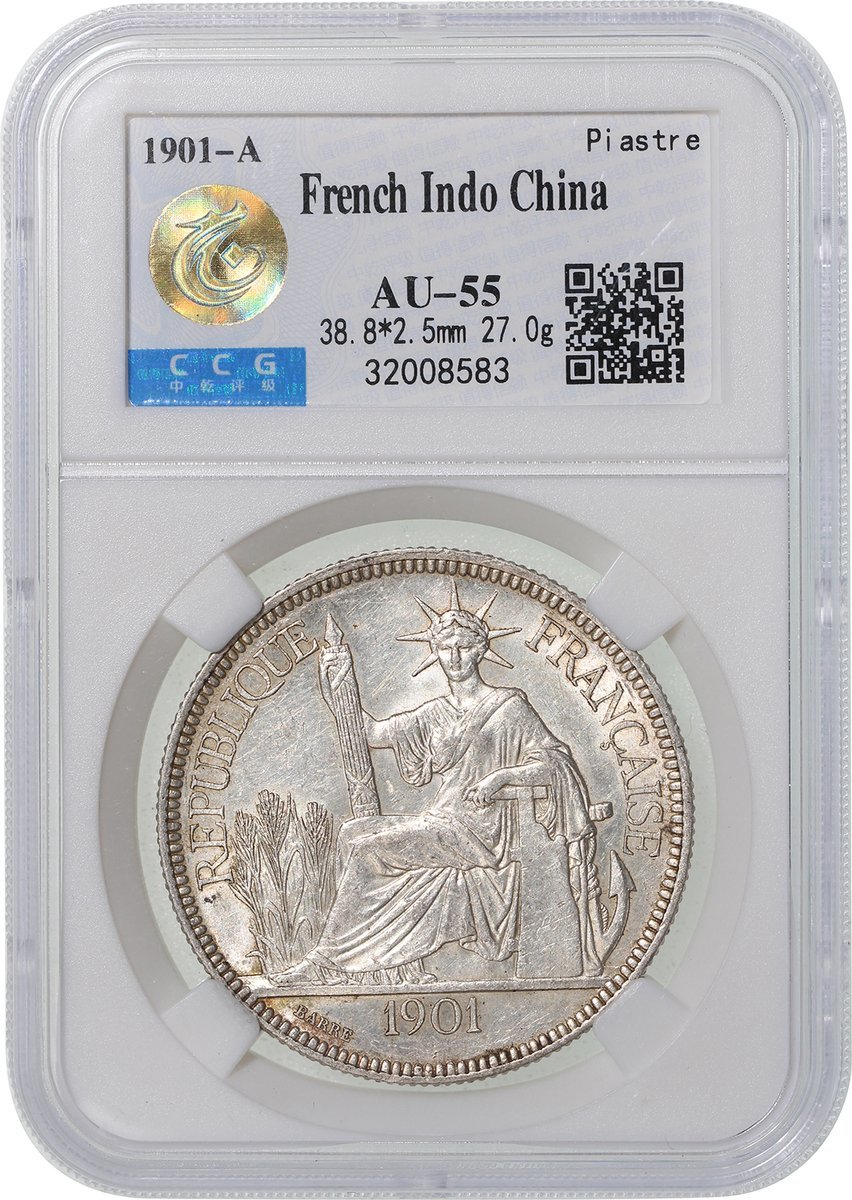French Indochina, 1 Piastre, (1901-A) graded Zhongqian AU55