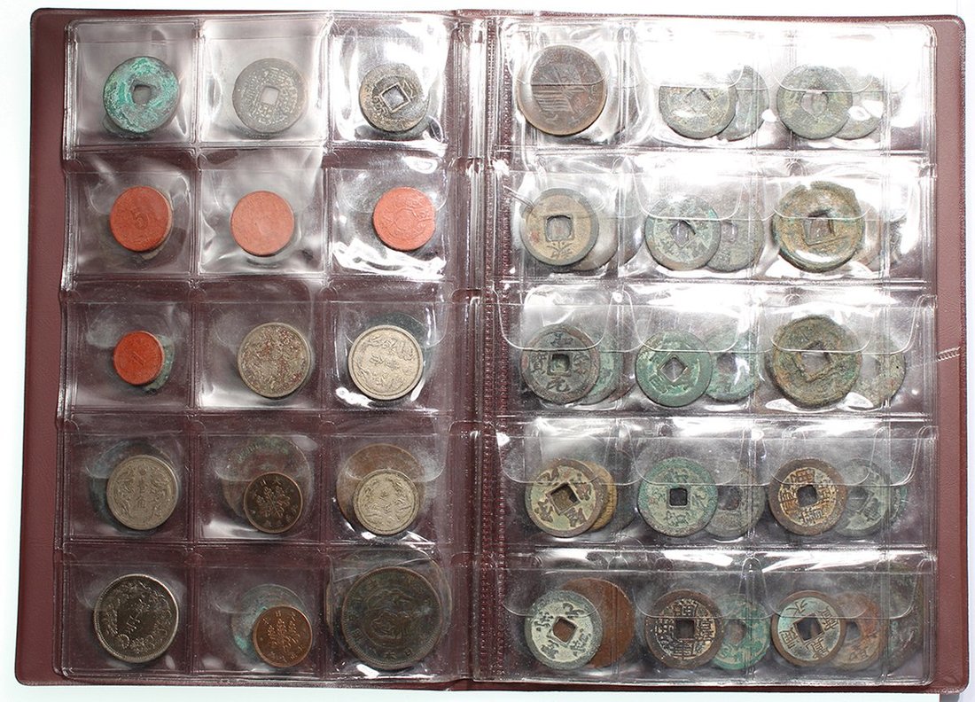 中國及日本/日佔時期錢幣一冊共90枚,不同時期,大多為中國古錢,混合品相,建議預覽