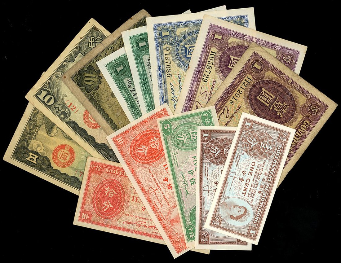 Government of Hong Kong, group of 10 notes, 1 cent to $1, including George V and 3 different colour varieties of George VI, also 3 Japanese invasion money,