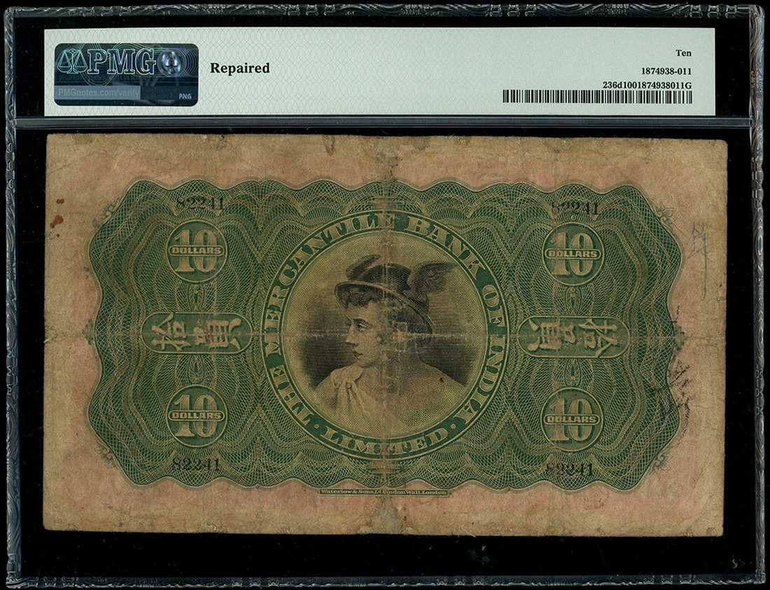 1937年有利銀行10元,編號82241,PMG 10,有修補,重要年份