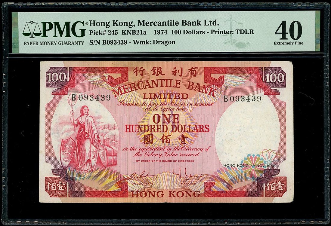 Mercantile Bank Limited, $100, 4.11.1974, serial number B093439, (Pick 245), PMG 40 Extremely Fine