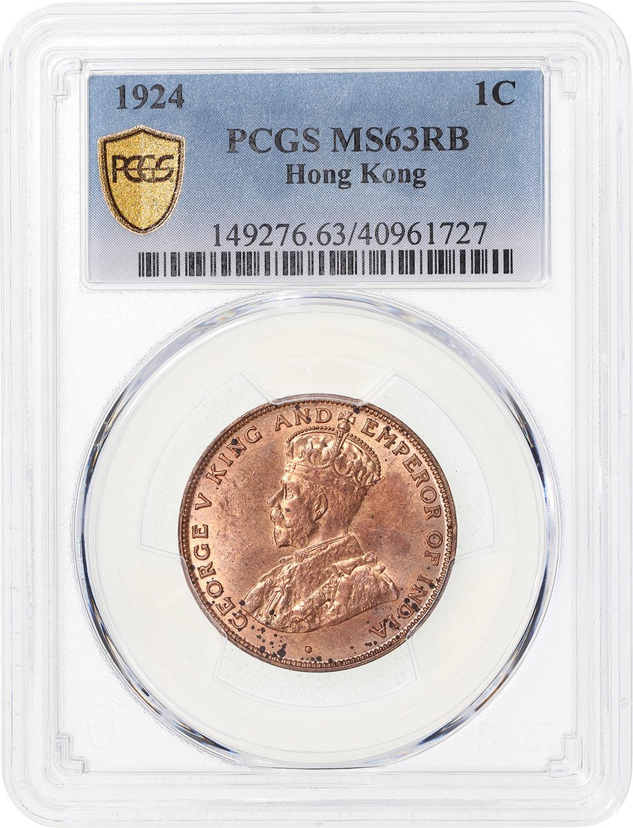 1924年香港1仙,PCGS MS63RB