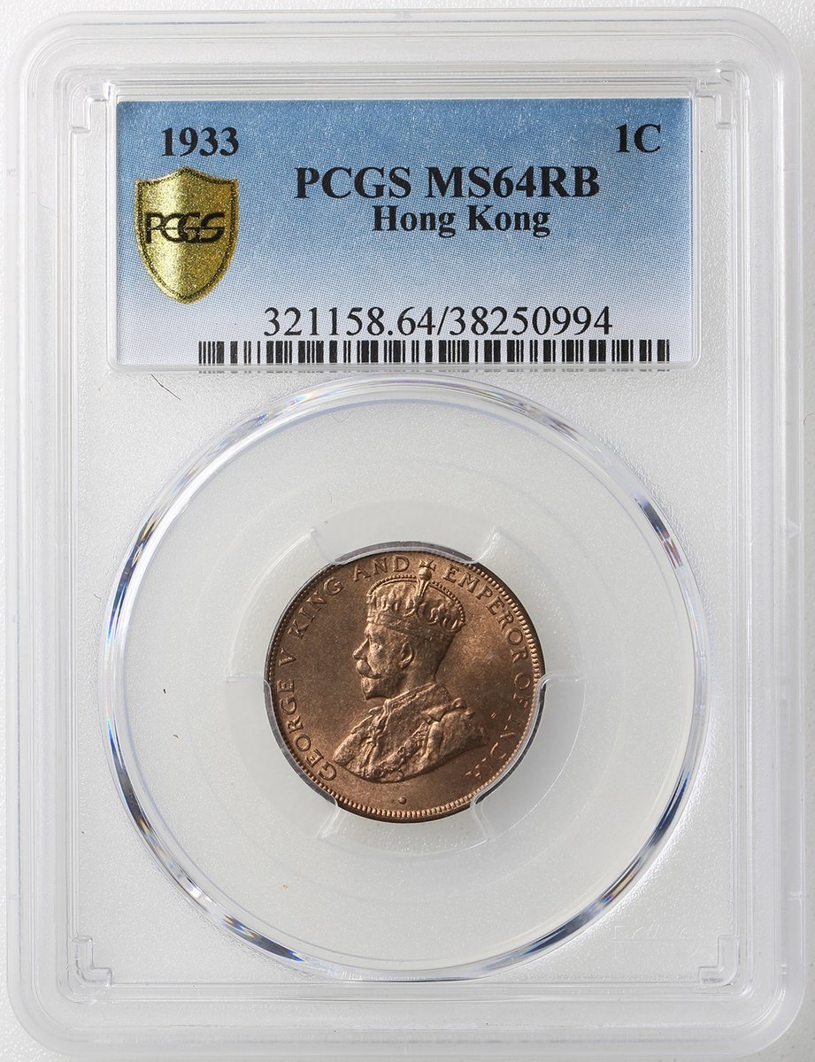 1933年香港1仙一組3枚,分別評PCGS MS63RB, MS64RB 及 MS65RB