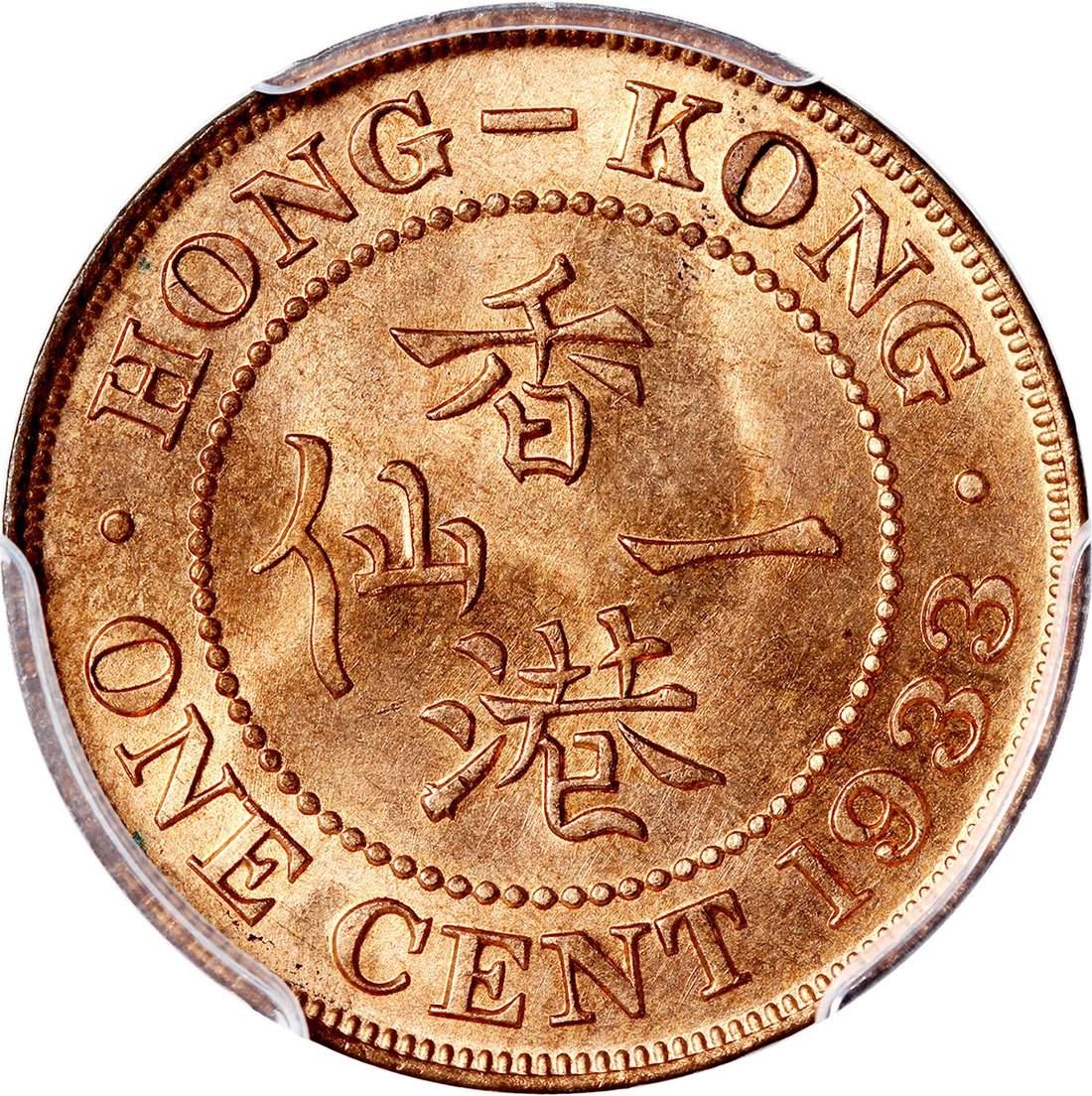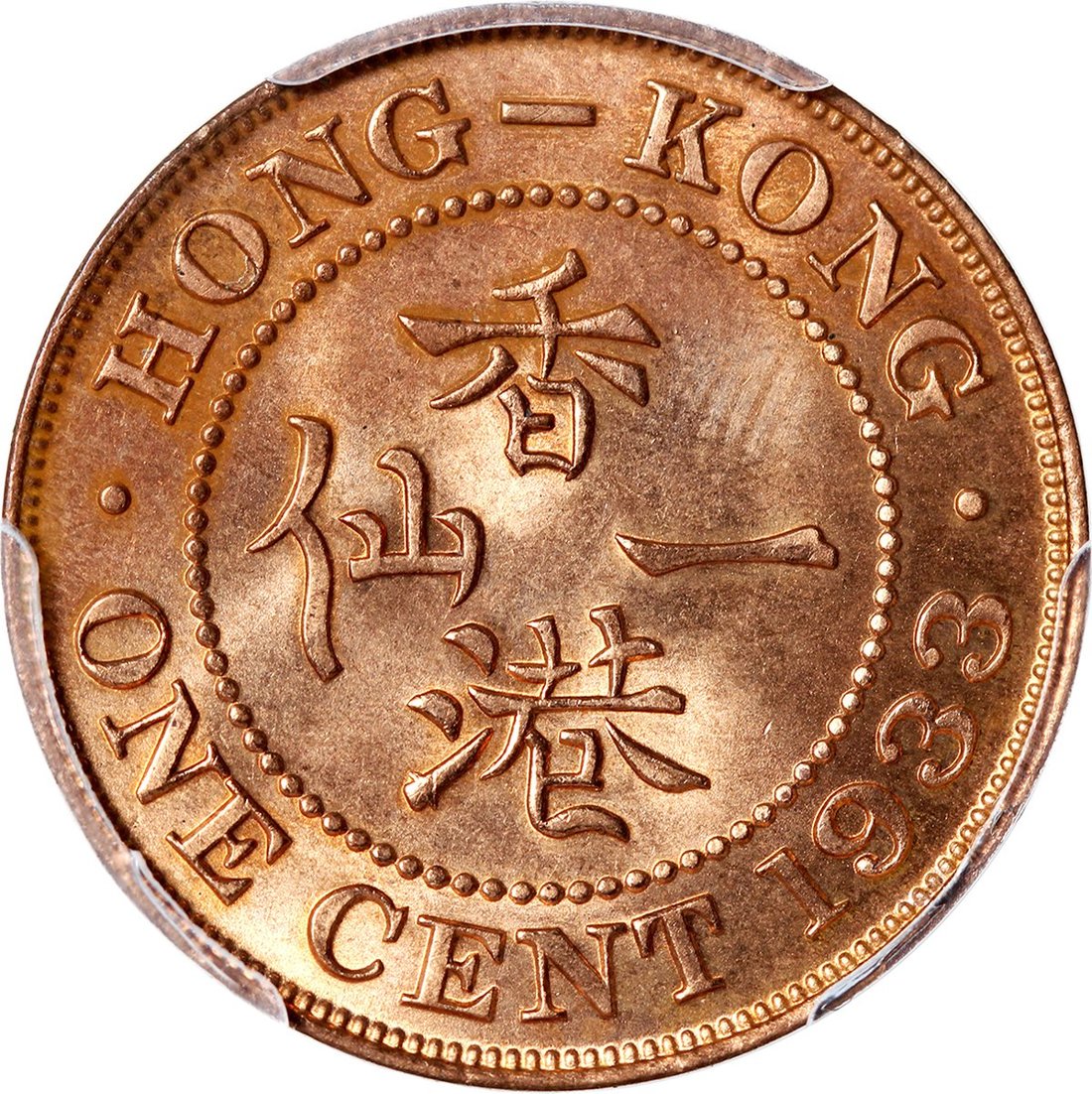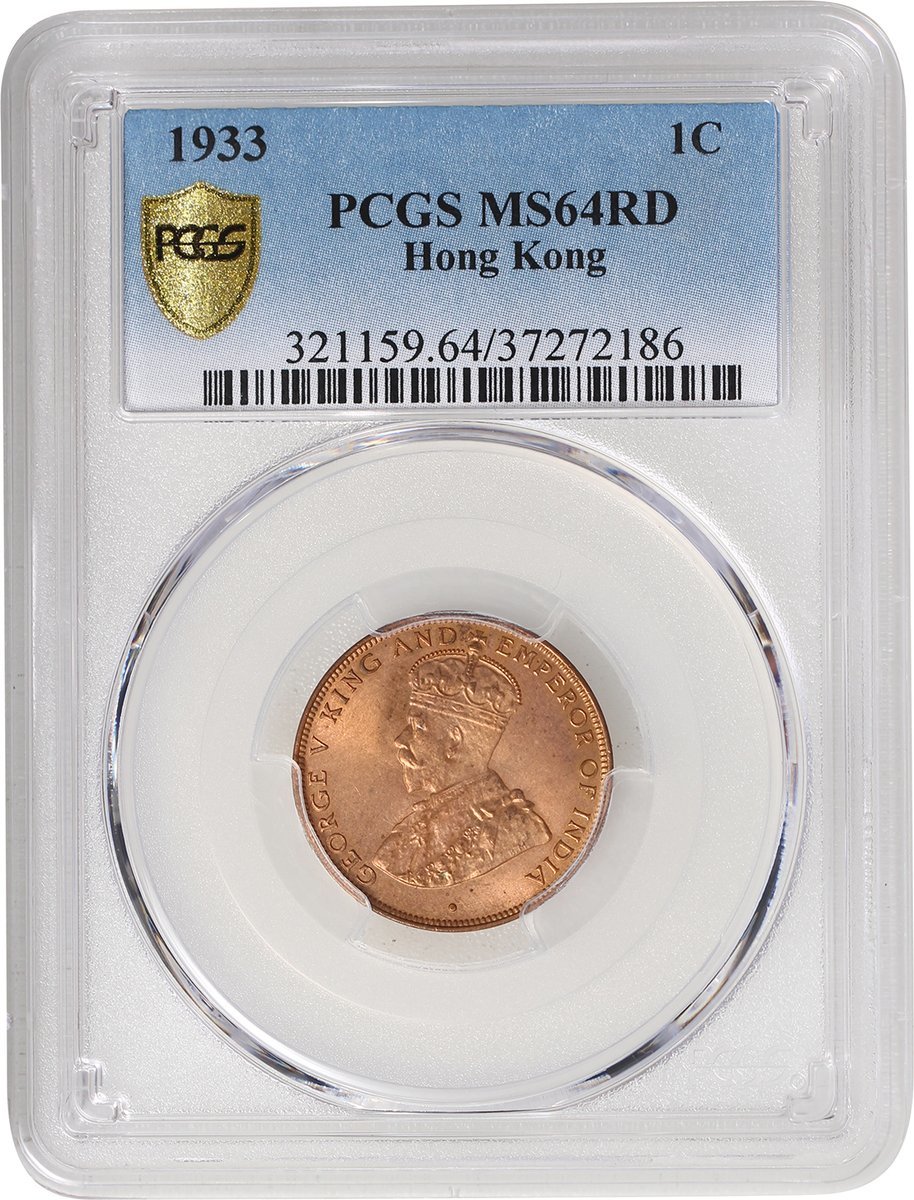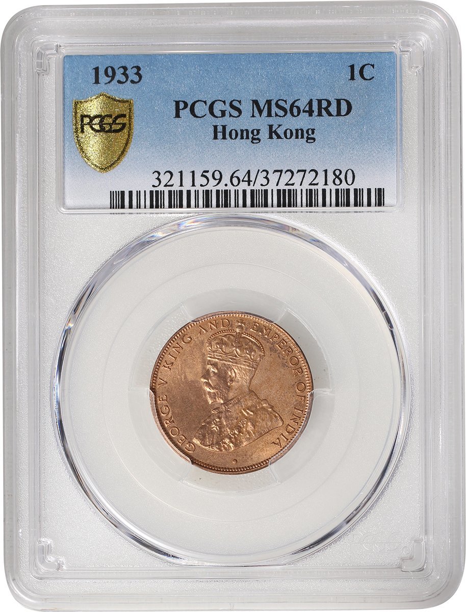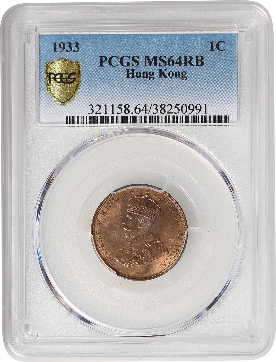 1933年香港1仙3枚,1枚PCGS MS64RB,其餘MS64RD