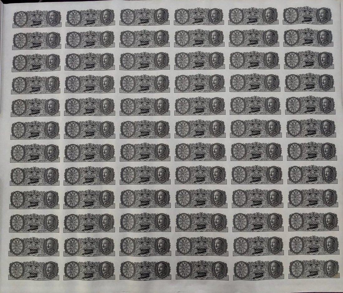 1946年中央銀行2毫樣票72連體,AU至UNC,紙邊有折