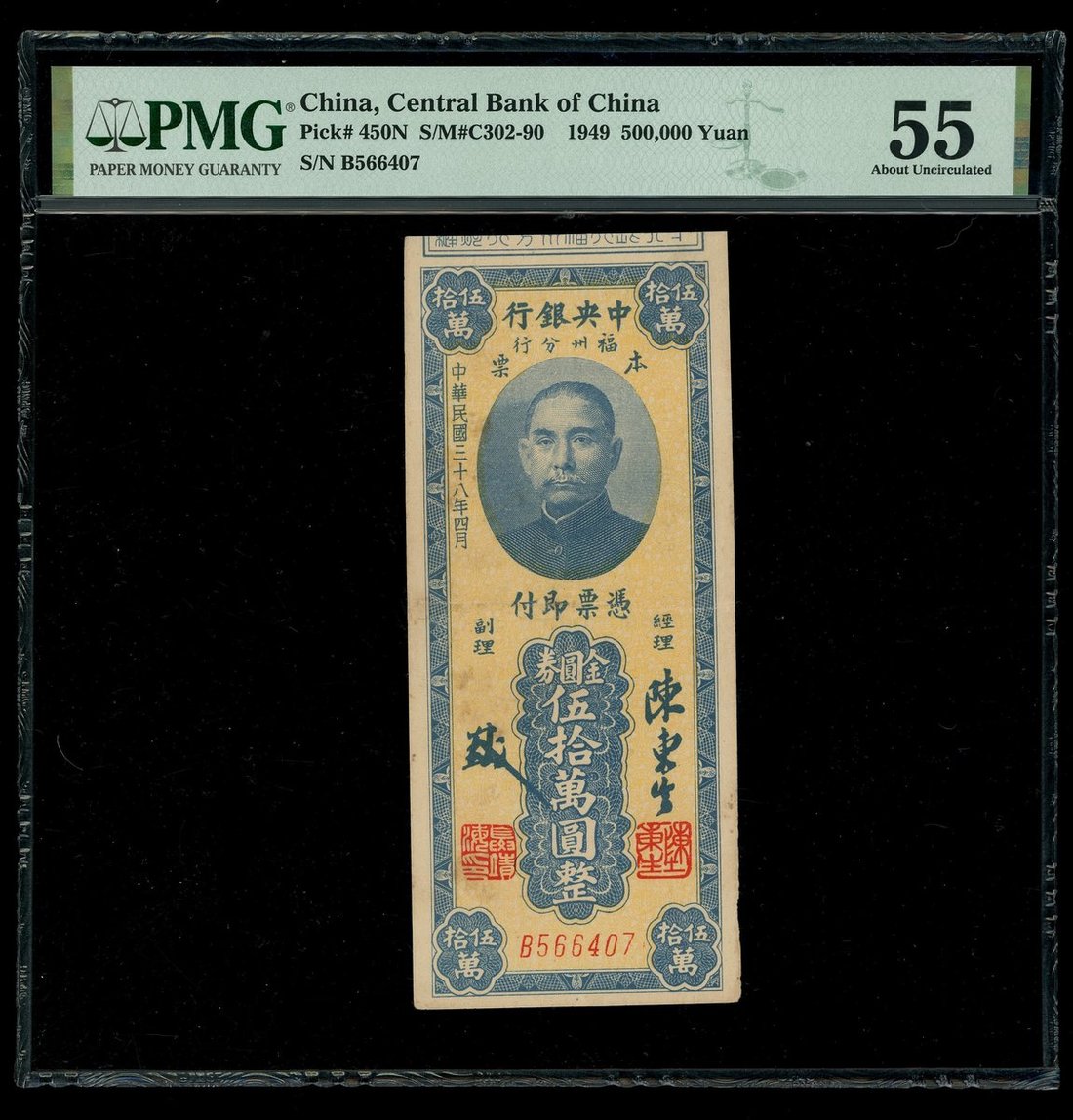 1949年中央銀行500000元銀行本票,福州地名,編號B566407,PMG 55