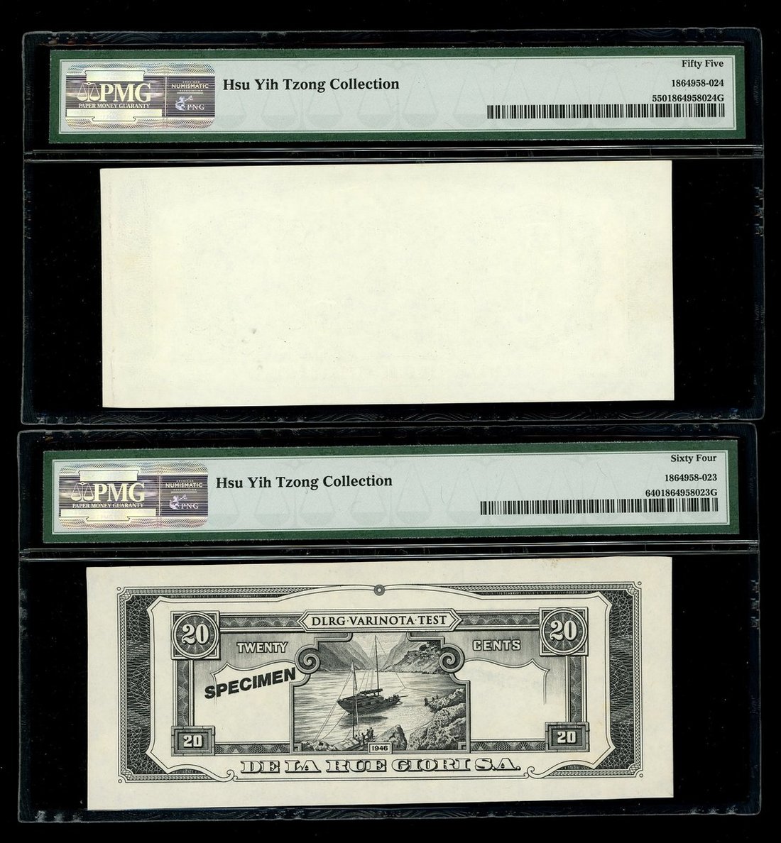 公司印制,許義宗教授藏品,PMG鑑定,評55及64