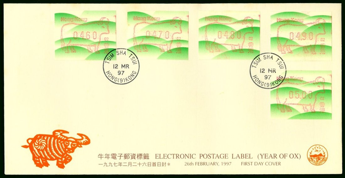1997 (12 Mar.) Electronic Postage Label (Year of Ox) F.D.C. ,10c. to $50, complete 50 values in 10 covers.