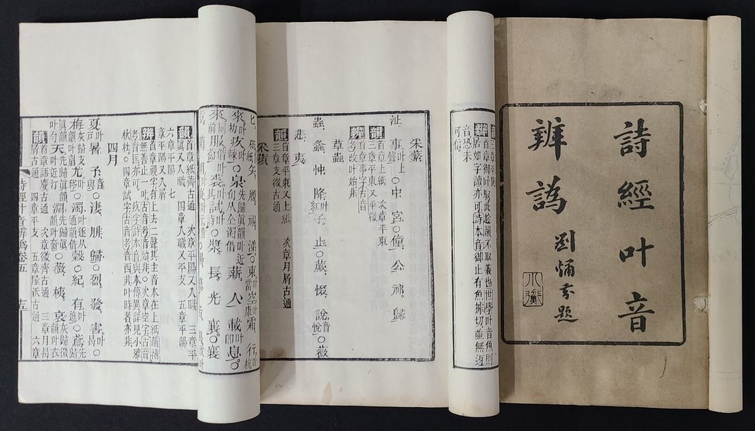 1738 "The Book of Songs and Yeyin Diagnosis of Jiao" six volumes in three books, woodcut. Written by Liu Weiqian; it is a monograph on Chinese phonology in the Qing Dynasty.