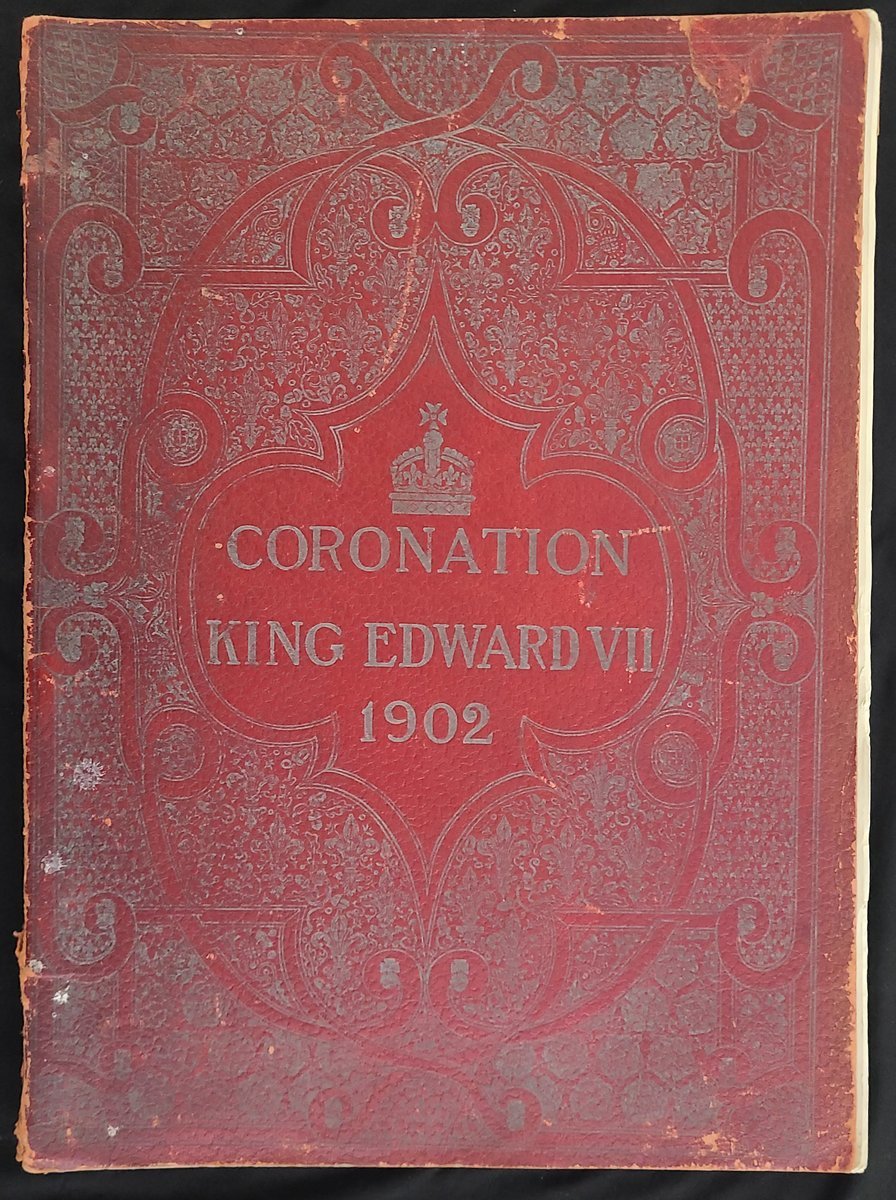 1902年英皇愛德華七世加冕紀念大型畫册(30 x 40 cm), 內有彩色石版画數幅, 但部份與隔紙黏着.