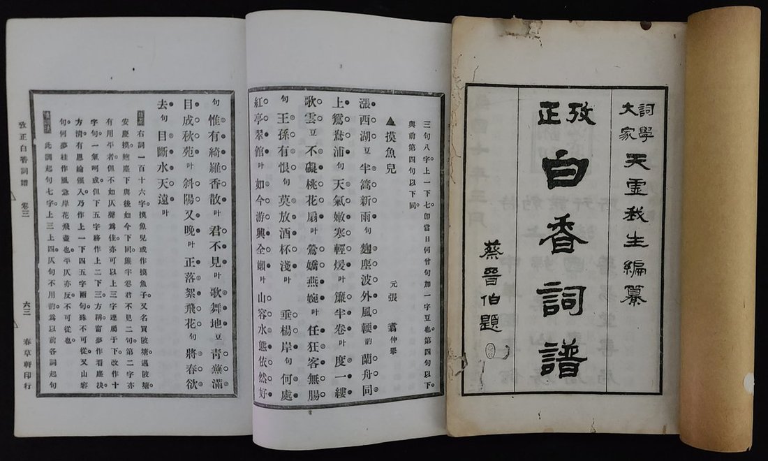 1918年(民國七年) 3月"白香山詞譜" 两册, 民國活字,排印本, 線裝, 有蟲蛀. (13 x 19.8 cm)