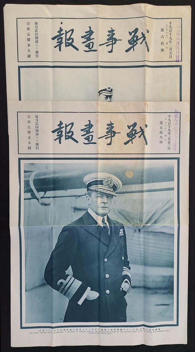 1919 ( Feb.) Two large (42 x 58cm) "War Pictorial" published by Japan in London. The content and picture descriptions are in Japanese and English. They mainly report on the situation of the First World War.