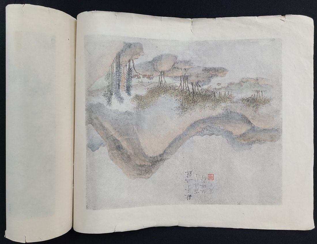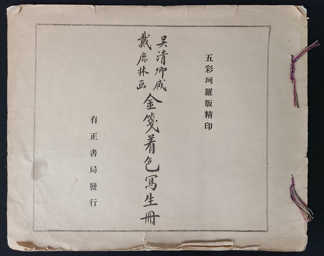 1922年4月"金箋着色寫生册" 上海有正書局出版及印刷, 珂羅版彩色精印 (彩圖七面), 線裝. 書微有殘破. (29 x 35 cm)