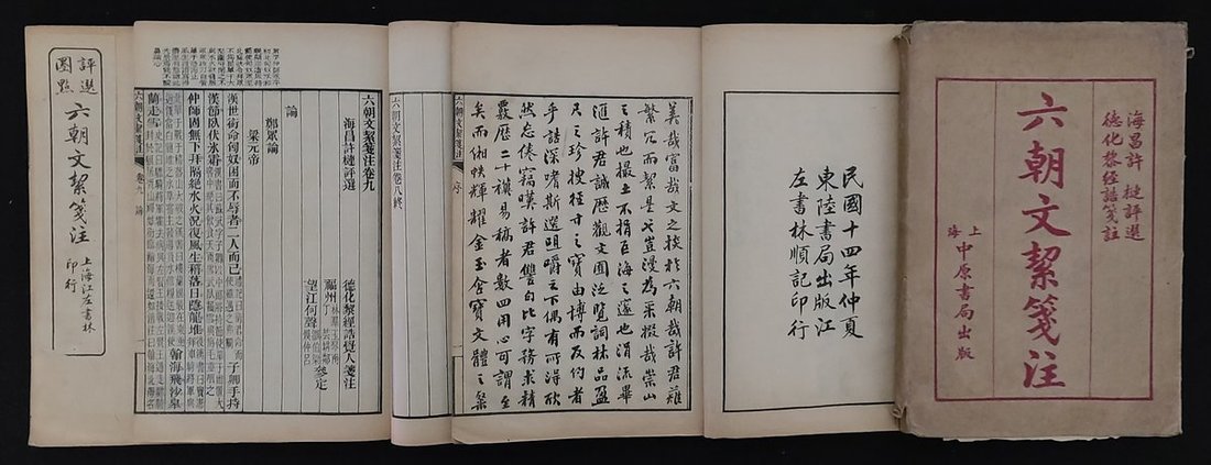 1925年石印本 "六朝文絜箋注" 十二卷共四册, 上海江左書林印刷及發行. 帶原書套. (13.4 x 20 cm)