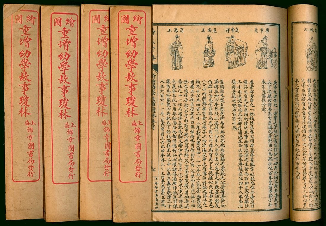 1930年 (民國19年) "繪圖重增幼學故事瓊林" 上诲錦章圖書局印刷及發行, 全書一套五册, 線裝本. (13.5 x 20 cm)