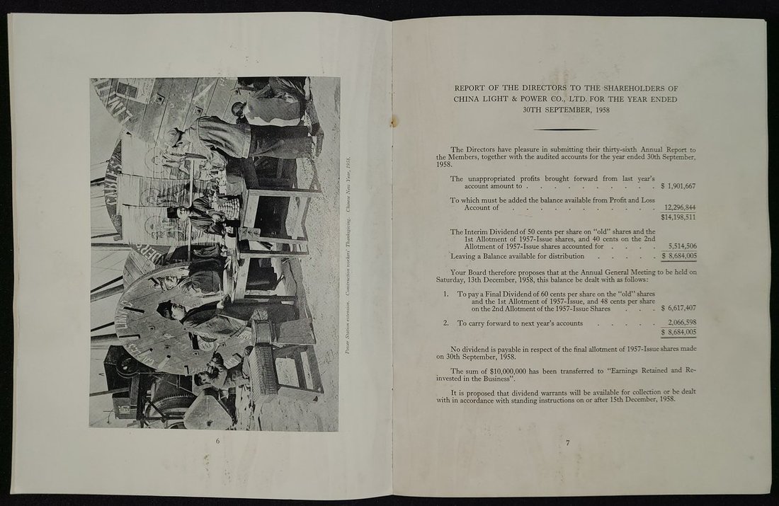 1958 CHINA LIGHT & POWER COMPANY LIMITED Thirty -Sixth Report of Board o Directors Chairman's Review & Statement of Accounts