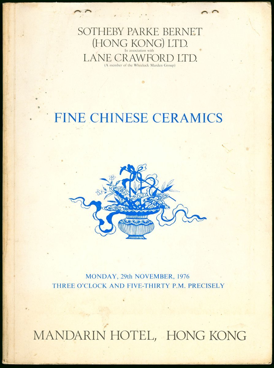 1976 (29 Nov.) A catalogue of the Hong Kong Sotheby's Chinese Ceramics auction in Mandarin Hotel.