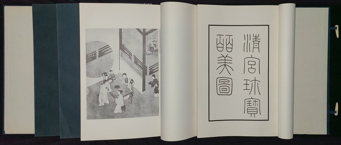 1980年代大型線裝畫册 "清宫珍寶皕美圖" (金瓶梅全圖), 此書應是台灣的重刊本. 全書四册共二百幅圖, 原刊是上海奇珍共賞社出版 (1923, 民國12年). 當時為非賣品. (31 x 45 cm)