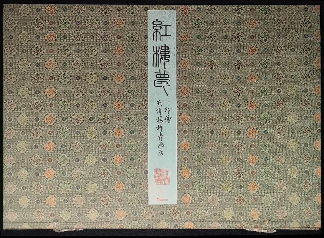 1990年代 "紅樓夢" 版畫册, 天津楊柳青畫店印繪. 折經裝, 全册含木刻套色版畫八面, 木刻題詞八面, 連原織綾書函. (28.5 x 40 cm)
