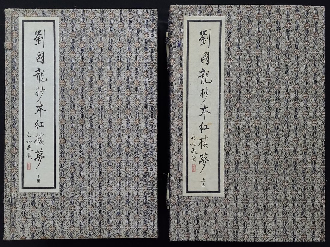 1995年5月初版 "劉國龍抄本紅樓夢" 一百二十回本, 两函共十六册, 線裝本, 宣紙精印, 榮寶齋出版社出版及印刷. 第十六册版㩲頁紙有黃斑. (18.5 x 29 cm)
