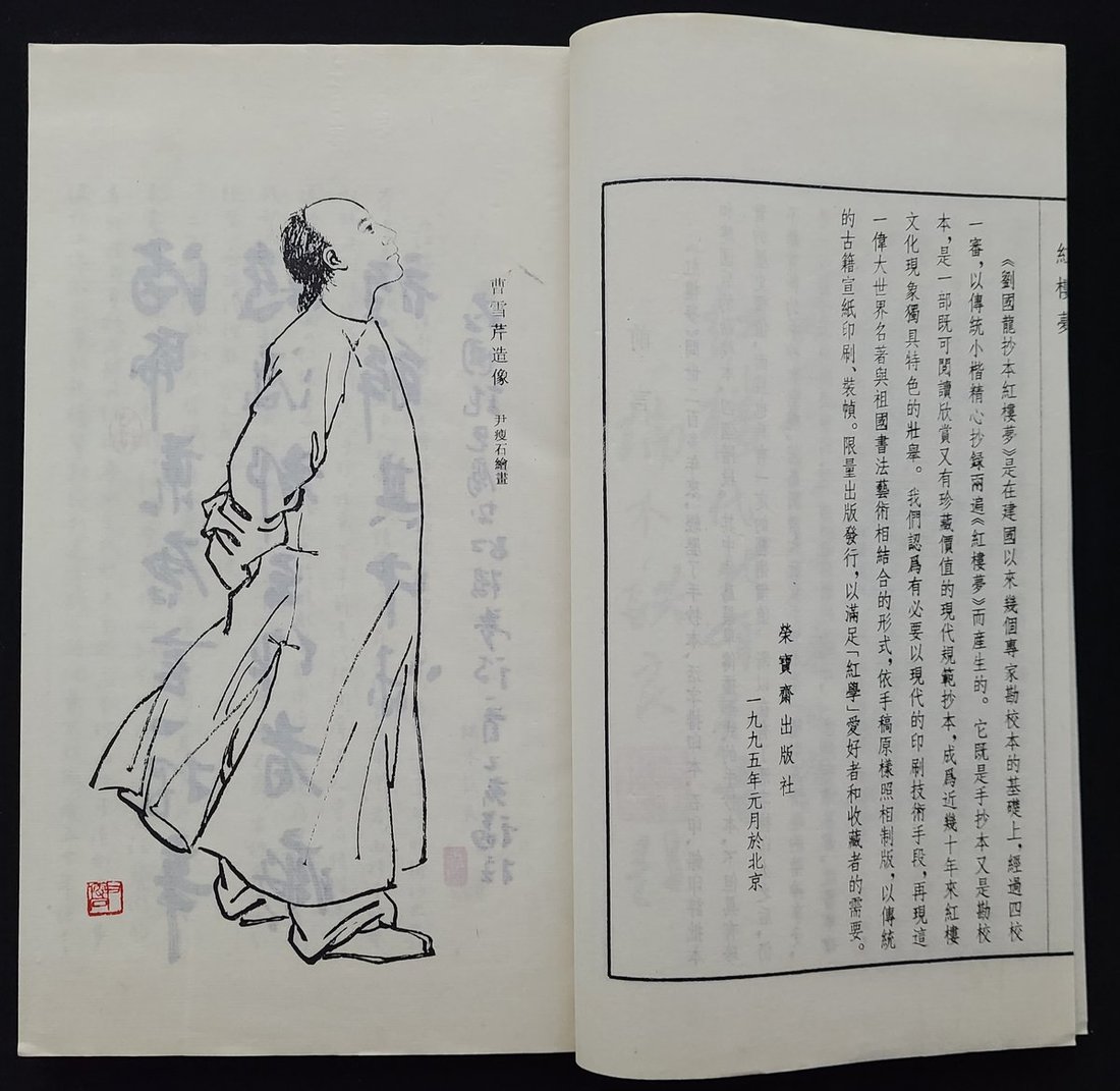 1995 (May) "Liu Guolong's Manuscript of A Dream of Red Mansions" 16 volumes in two covers. Thread-bound, fine printing on rice paper. Published and printed by Rongbaozhai Publishing House. Copyright page in The sixteenth book has yellow spot and tuning (18.5 x 29 cm)