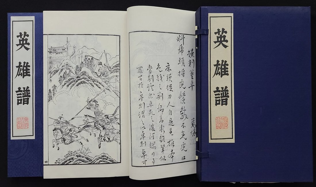 1997年6月刊"英雄譜" 一函两册, 線裝本. 江蘇廣陵古籍刻印社出版. 廣陵古籍印刷廠印刷. 印數500套. (16.5 x 27 cm)