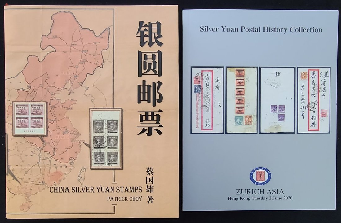 2008 (Dec.) The first edition of "China Silver Yuan Stamps", paperback, by Patrick Choy; and the Zurich Asia auction catalog 2020 (june) "Silver Yuan Postal History Collection"