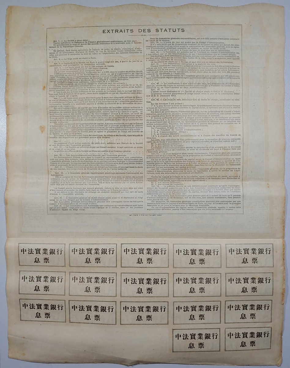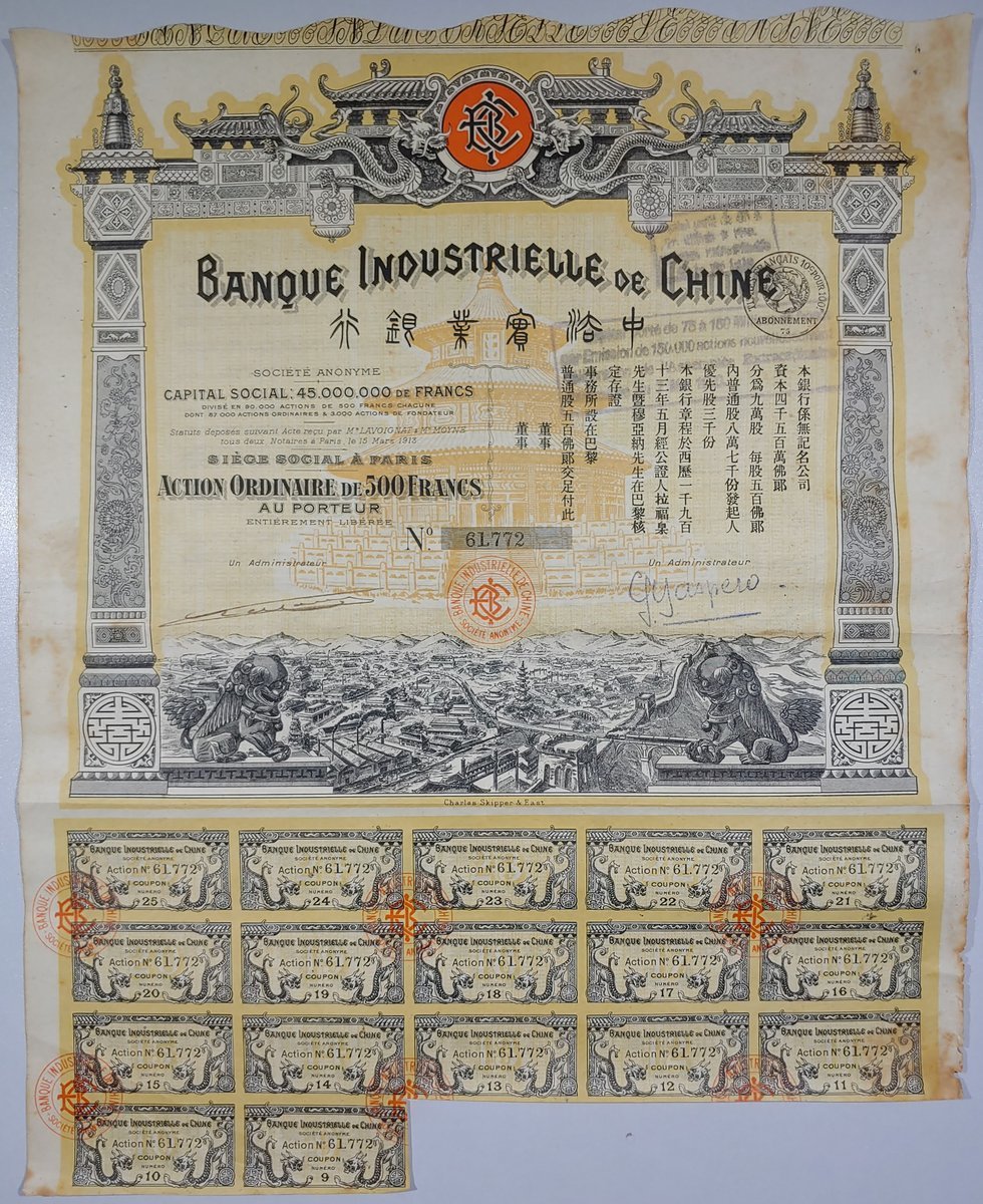Banque Industrielle de Chine, 2x loan for 500 Francs, 1913, numbers 61772 and 230411, fine to very fine, with coupons attached (2)