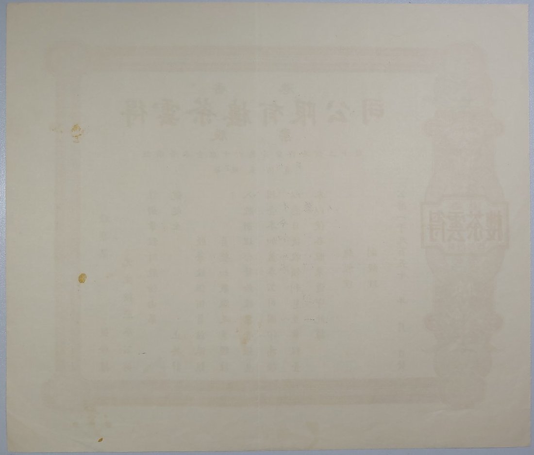 民國時期中華民國廣東全省地方勸業有獎公債10元,編號0080051,及1950年香港得雲茶樓未經行使股票,前者AU,後者EF,附息票