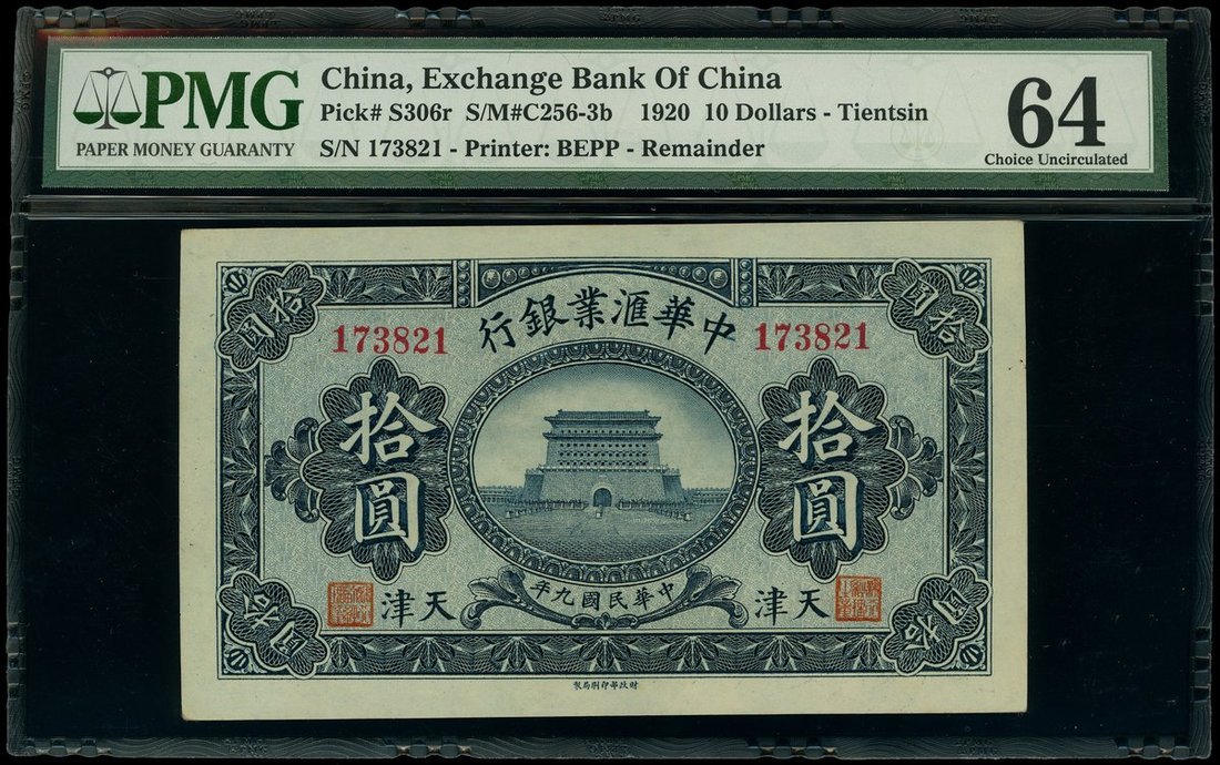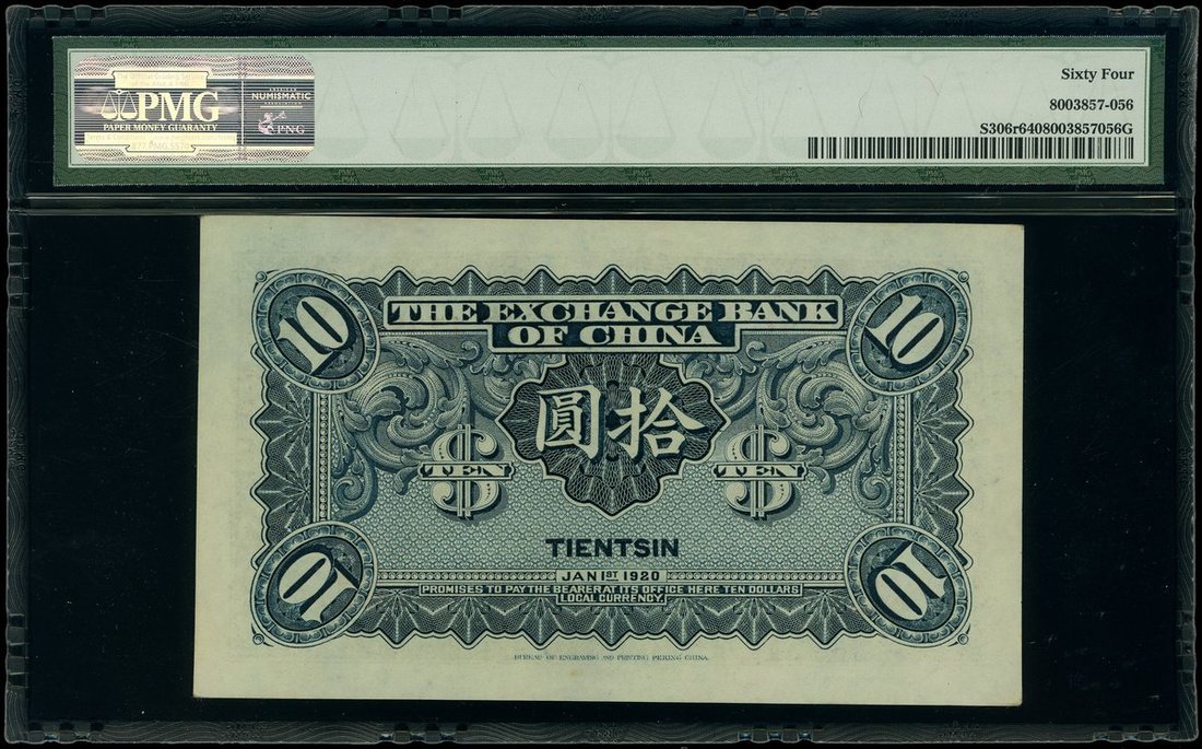 The Exchange Bank of China, $10 remainder, Tientsin, 1920, serial number 173821, (Pick S306r), PMG 64 Choice Uncirculated