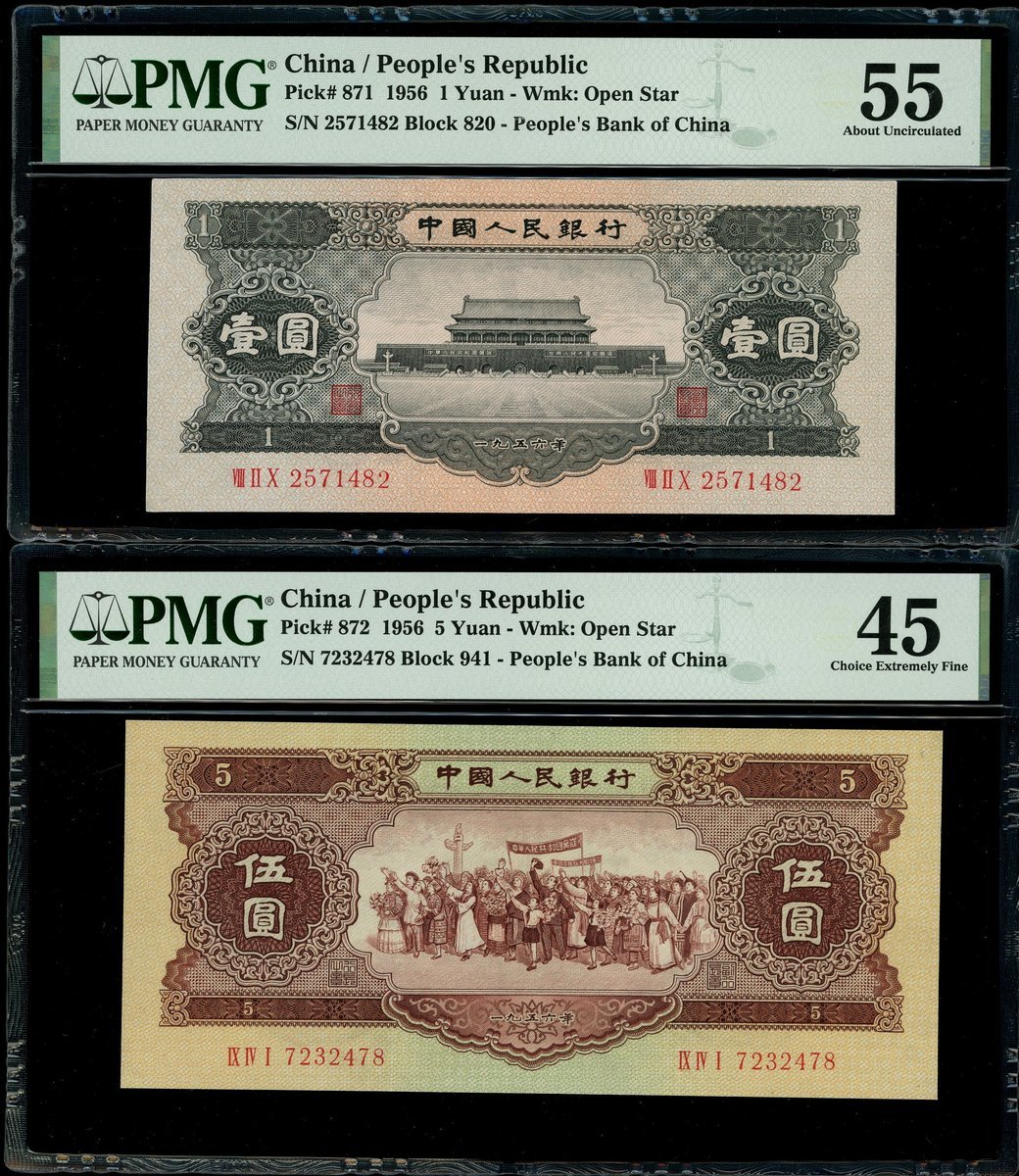 People's Bank of China, 2nd series renminbi, 1956, 1 yuan, VIII II X 2571482 and IX IV I 7232478,