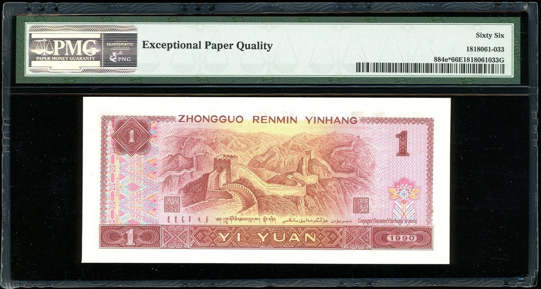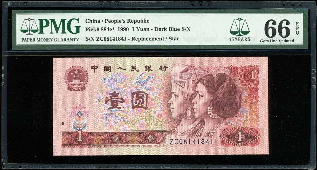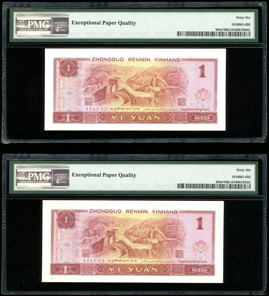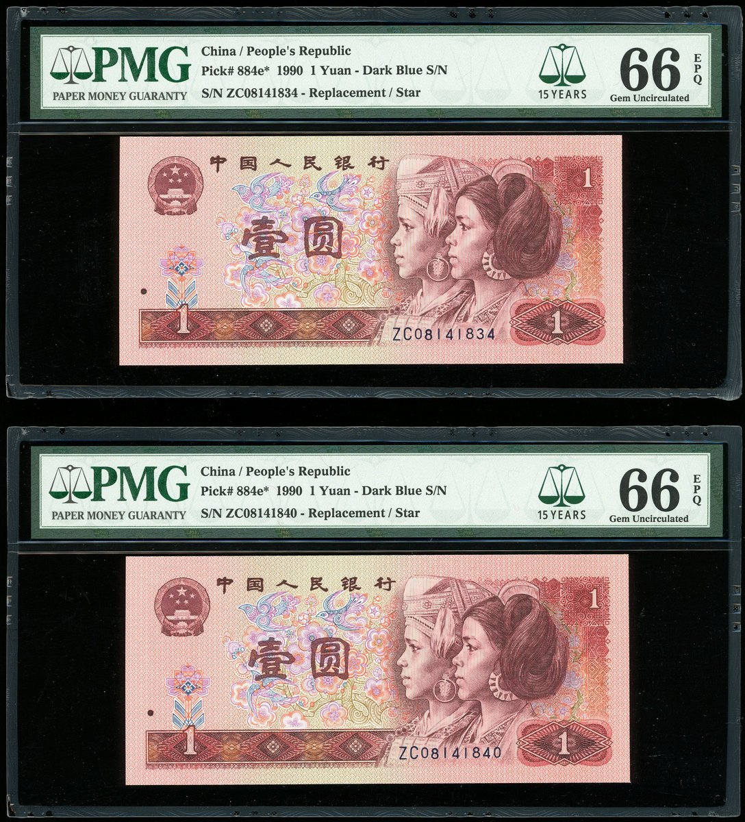 1980-90年中國人民銀行第四版人民幣1元3枚,深藍補版編號ZC08141834, 840 及 841,均PMG 66EPQ