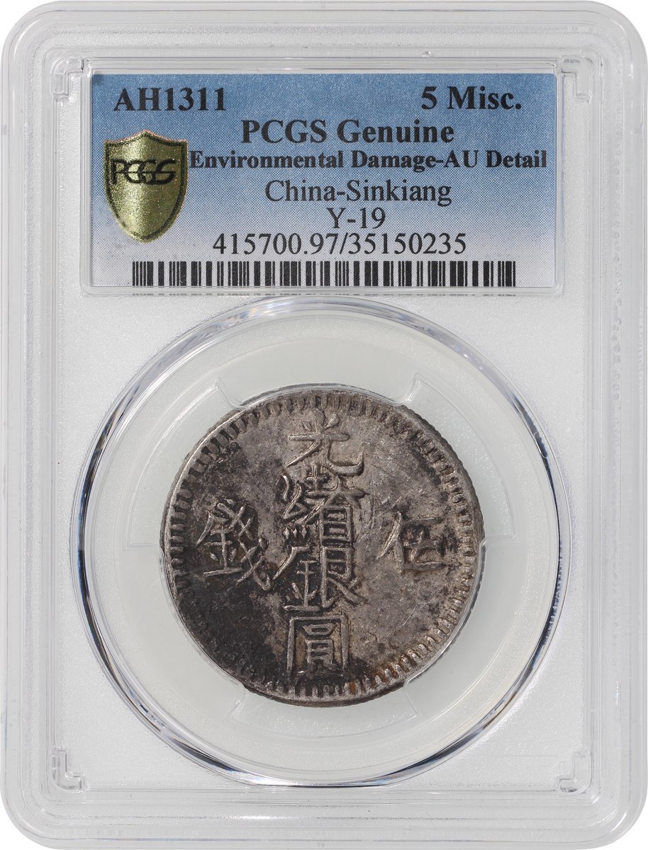 1907年新疆大清銀幣湘平五錢,及1893年5錢,分別PCGS VF Detail (有清洗) 及 AU Details (環境損害)