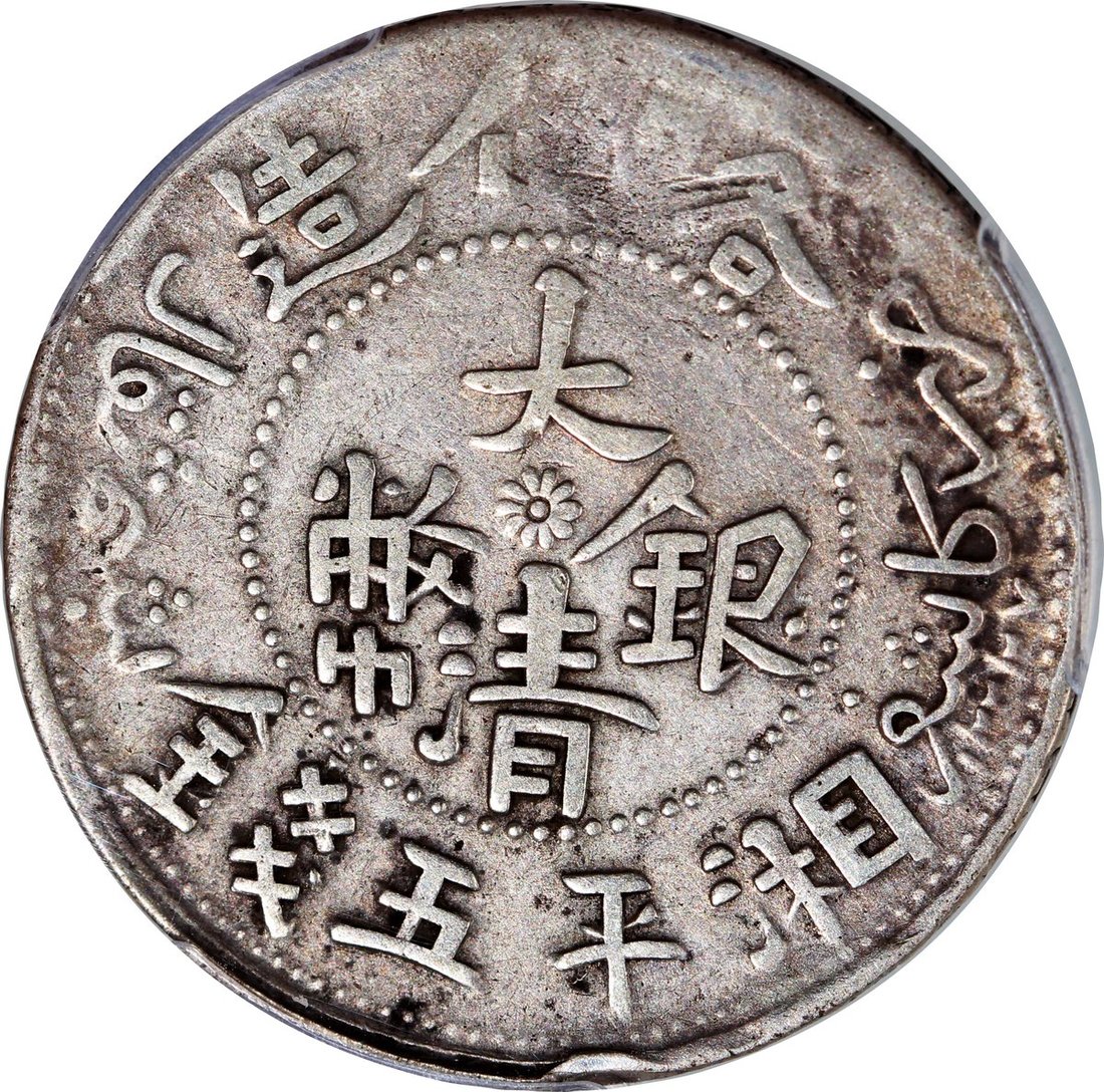 1909年新疆喀什湘平五錢,PCGS VF Detail,有塗劃