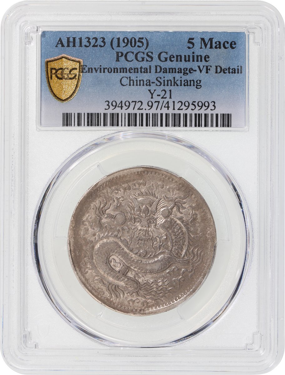 1905年新疆喀什光緒元寶五錢,PCGS VF Detail,,環境損害
