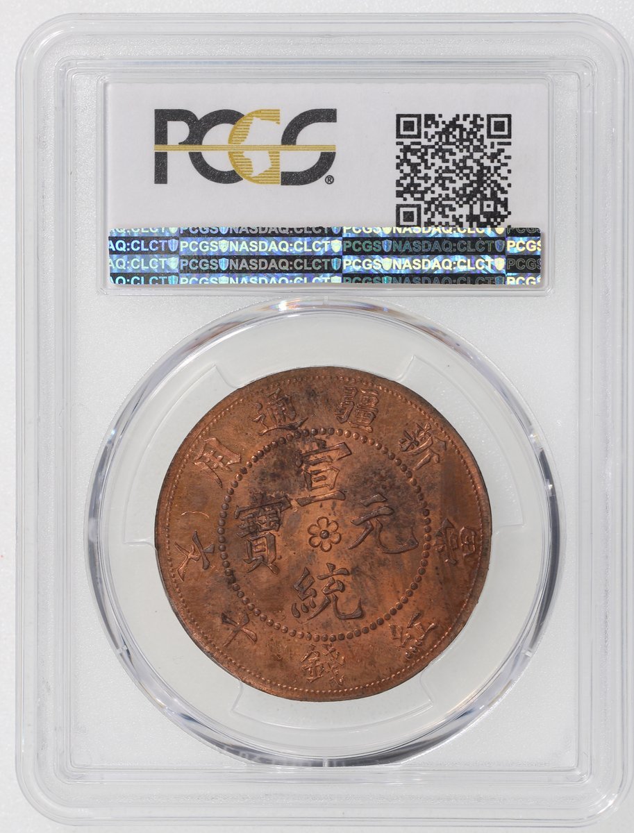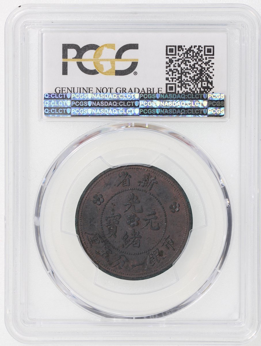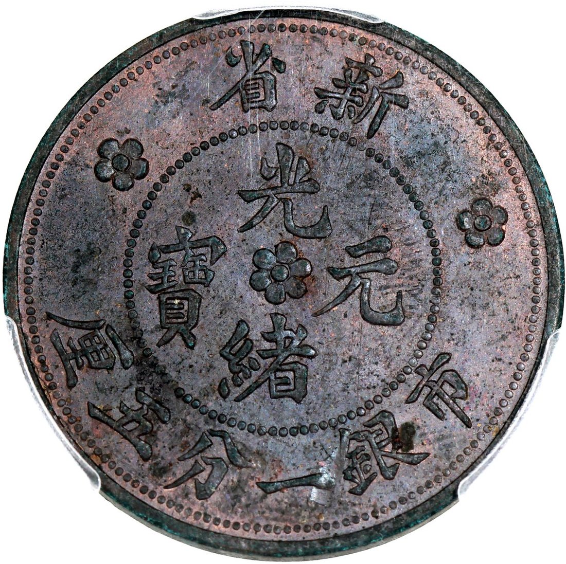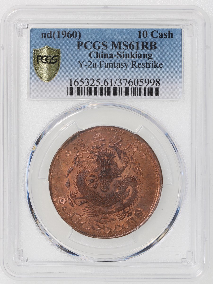 1960 年後鑄新疆新省光緒元寶市銀一分五厘、新疆通用宣統元寶紅錢十文共2枚, PCGS UNC Detail 及MS61RB