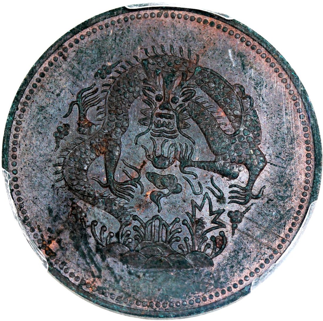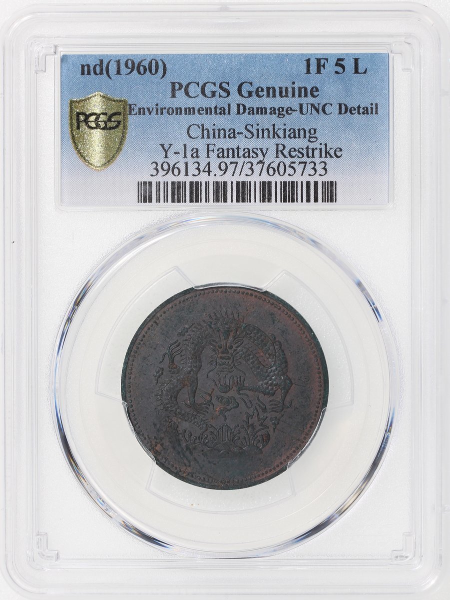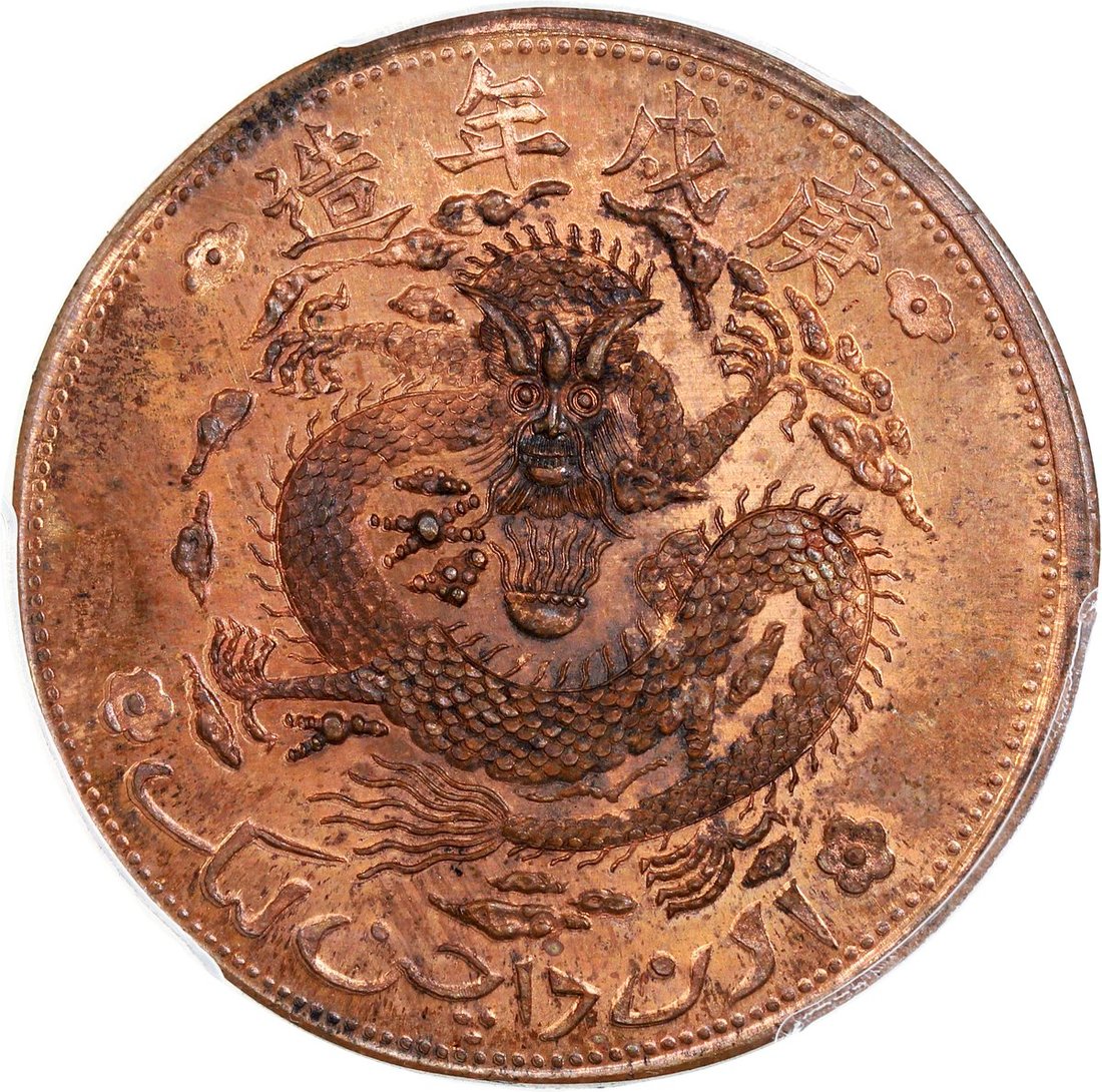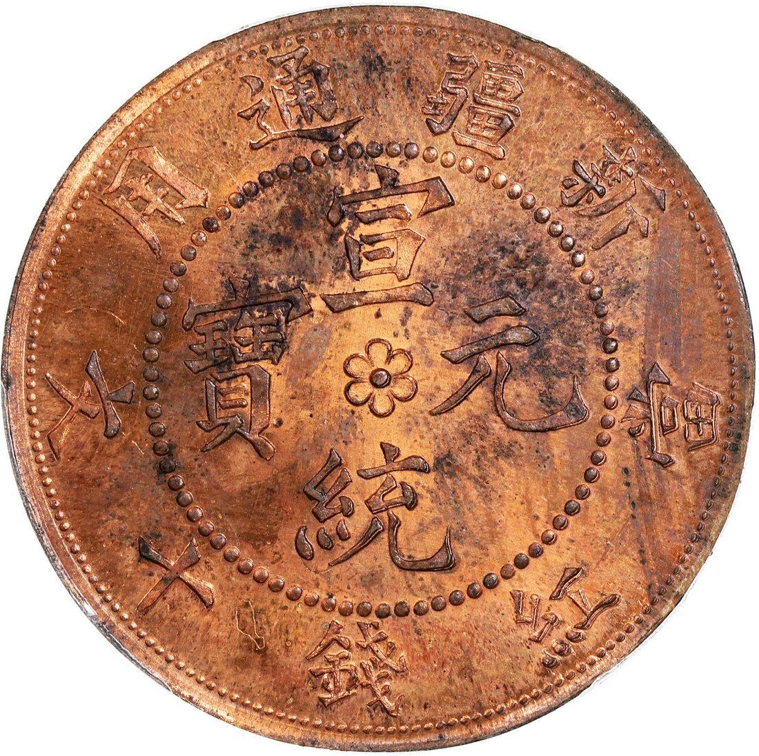 1960 年後鑄新疆新省光緒元寶市銀一分五厘、新疆通用宣統元寶紅錢十文共2枚, PCGS UNC Detail 及MS61RB