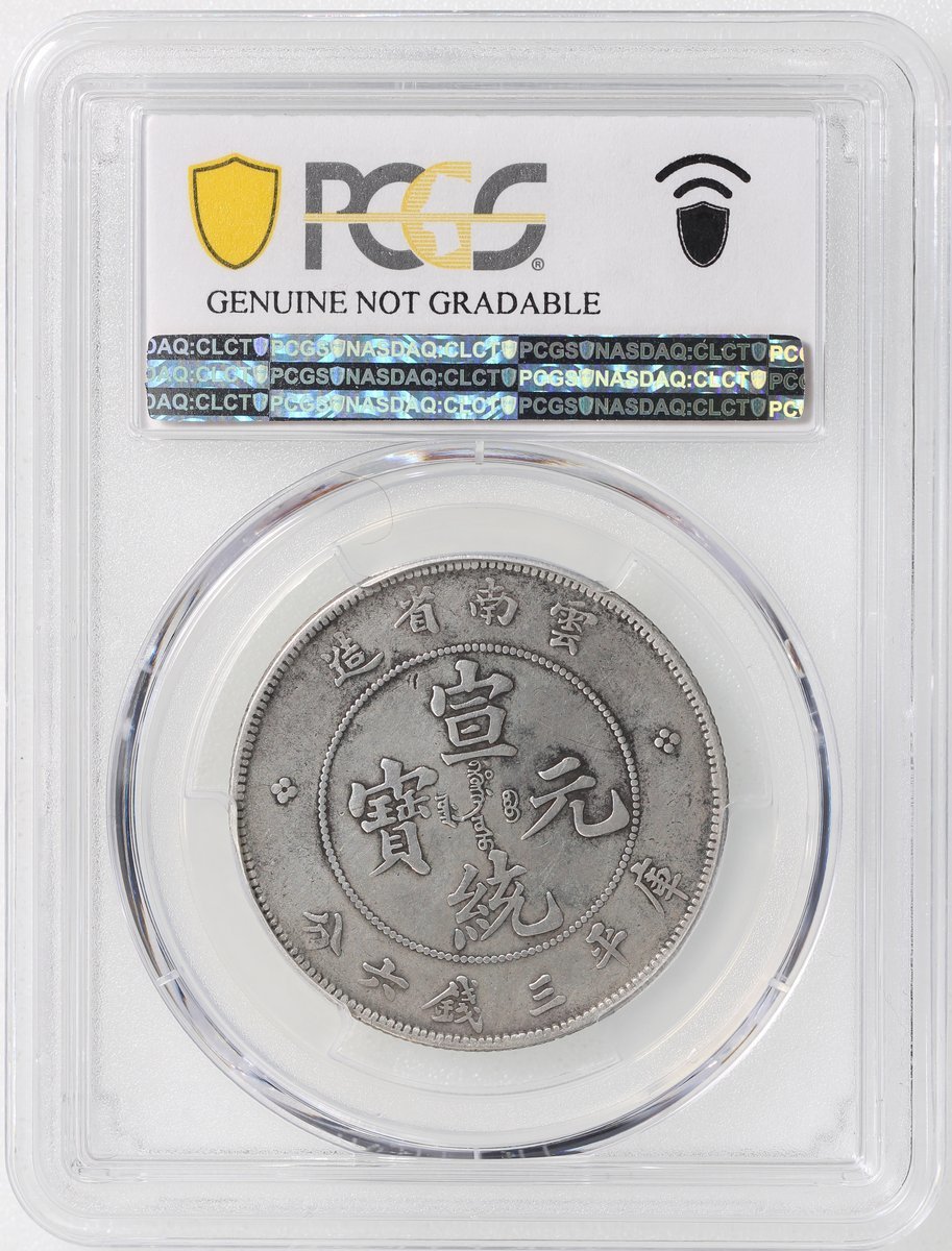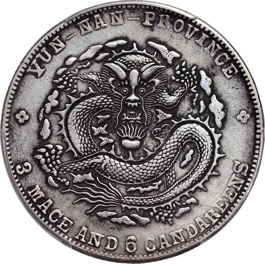 雲南省造光緒元寶庫平三錢六分,老龍版,PCGS XF detail,嚴重清洗